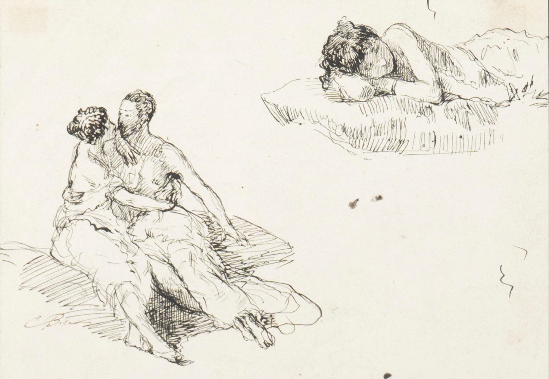 Studi di amanti e donna dormiente china su cartoncino mm 144 x 205 firmato in basso a sinistra: CBiseo