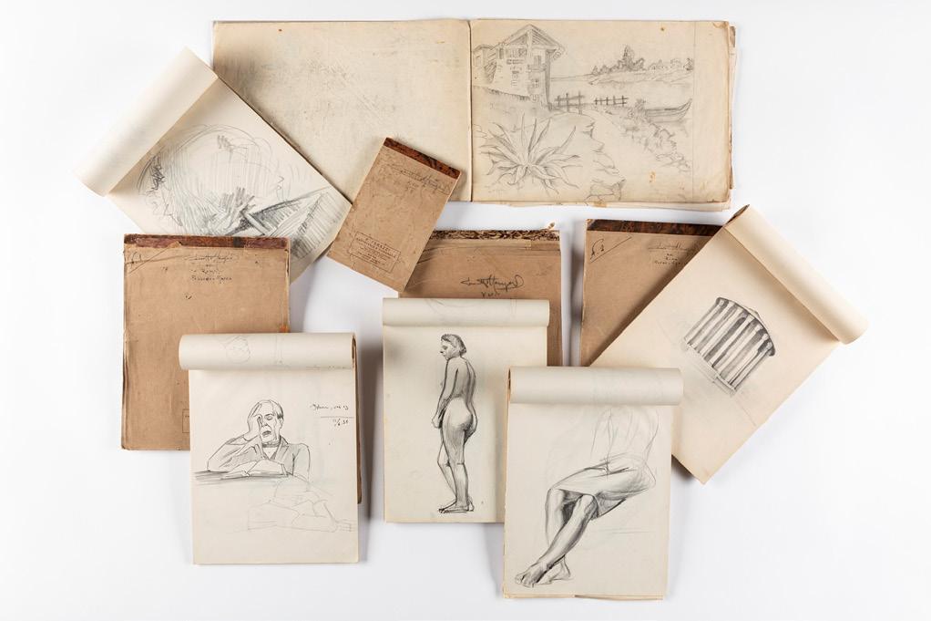 quattro disegni, tutti matita su carta mm 247 x 155 ciascuno