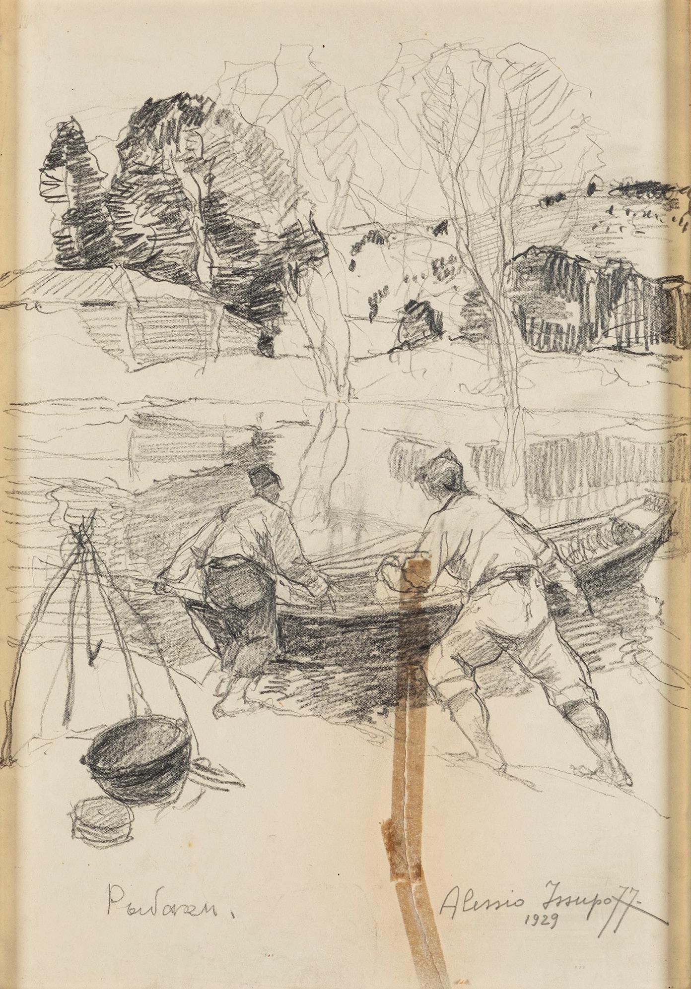 matita su carta velina applicata a cartoncino mm 180 x 235 (il cartoncino) firmato in basso a sinistra: A. Pasini al retro, sul cartoncino, titolato
