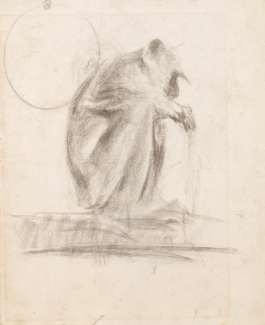 Statua in giardino matita e carboncino su carta mm 170 x 110