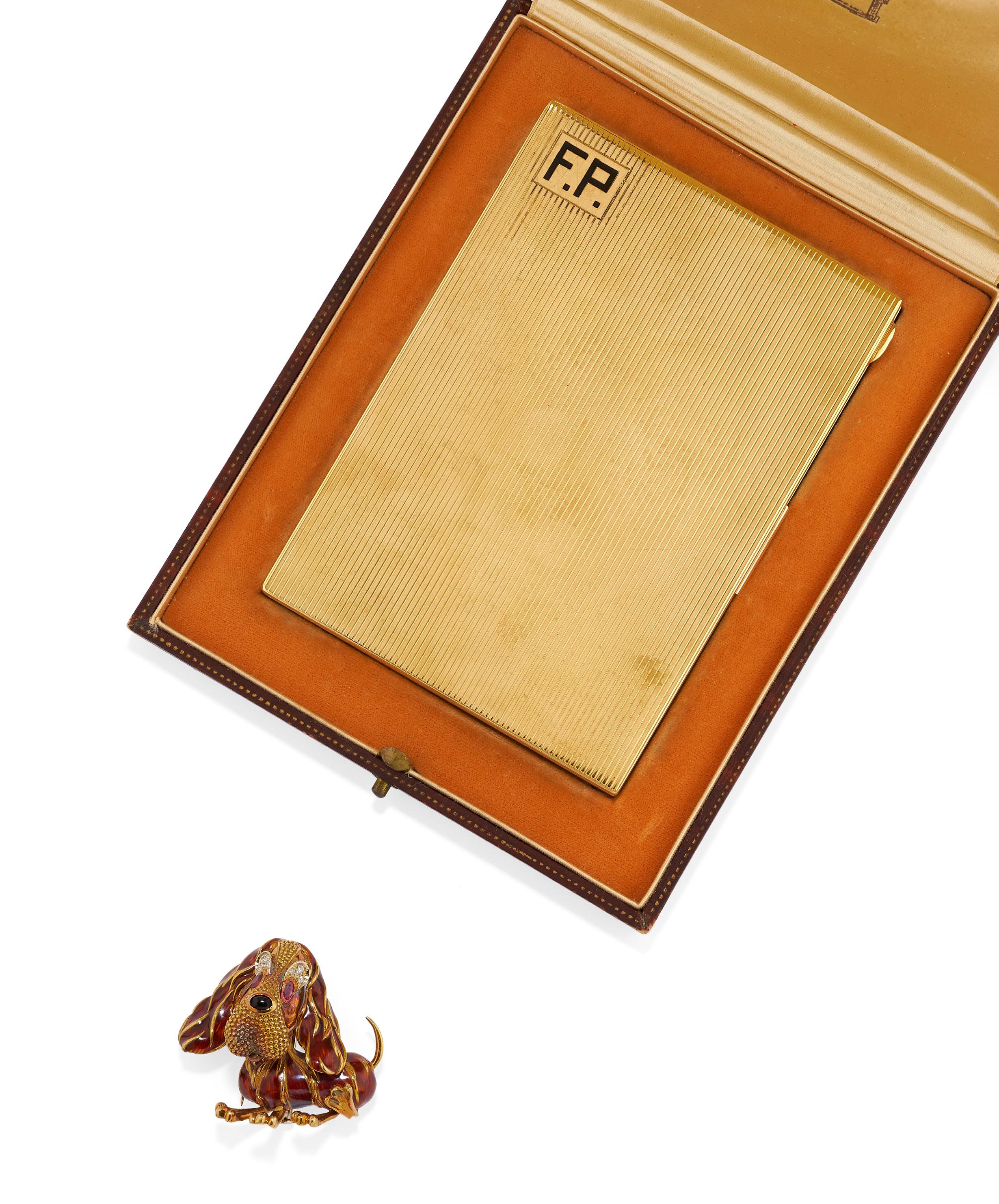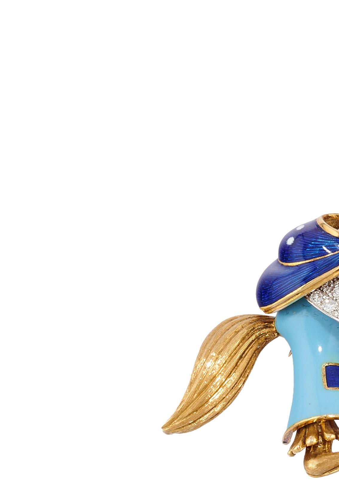 BROOCH WITH ENAMELS, 18k yellow gold, of a seal design, signed and dated, with case.
