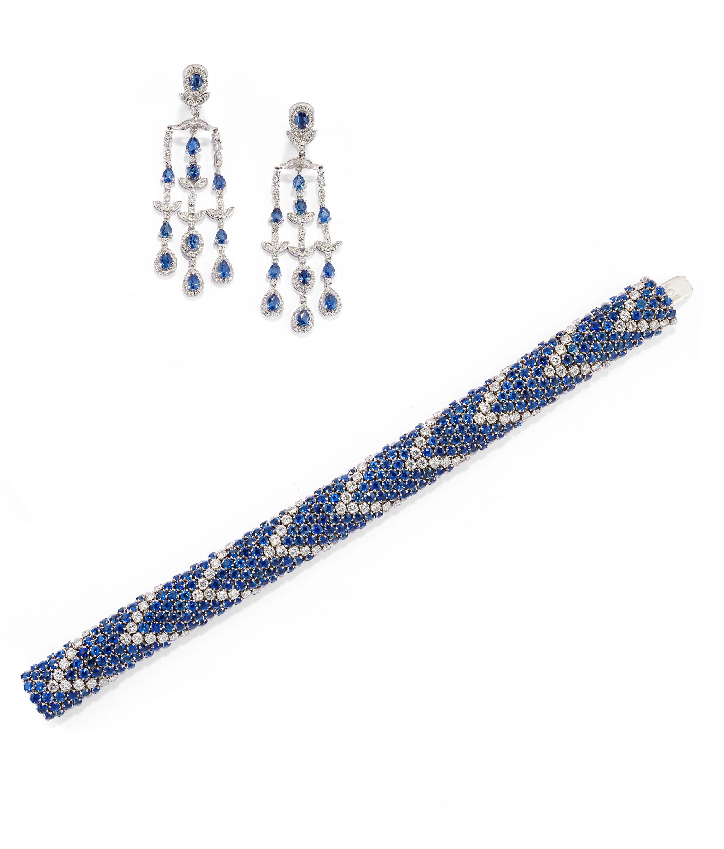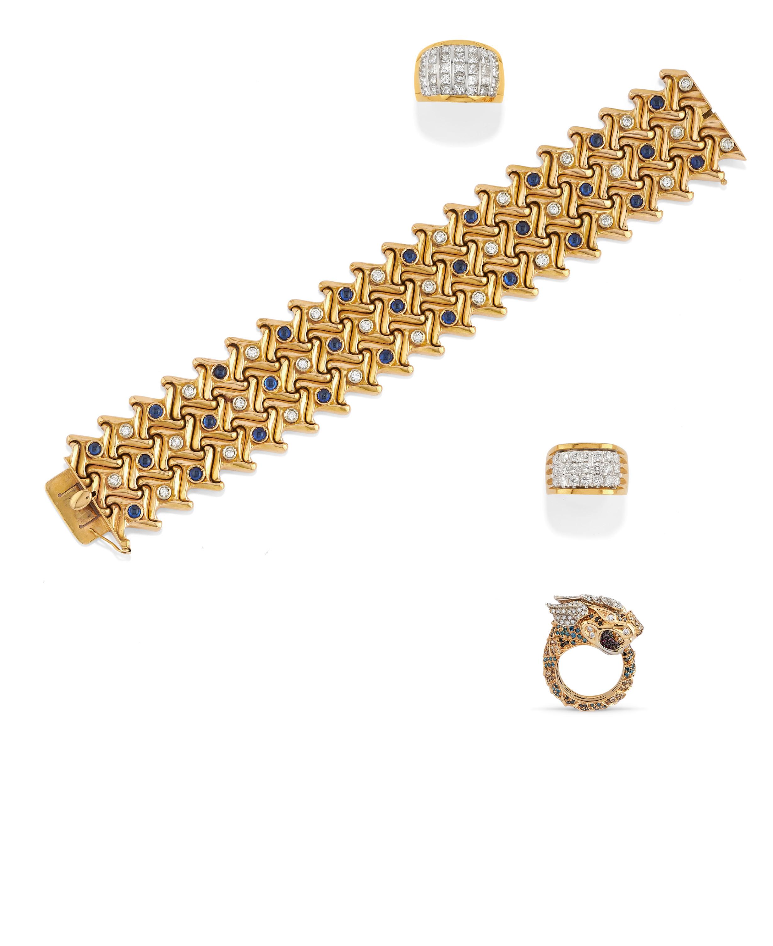 rose gold, set with round-cut multicolour sapphires totalling approx. ct 3,40.