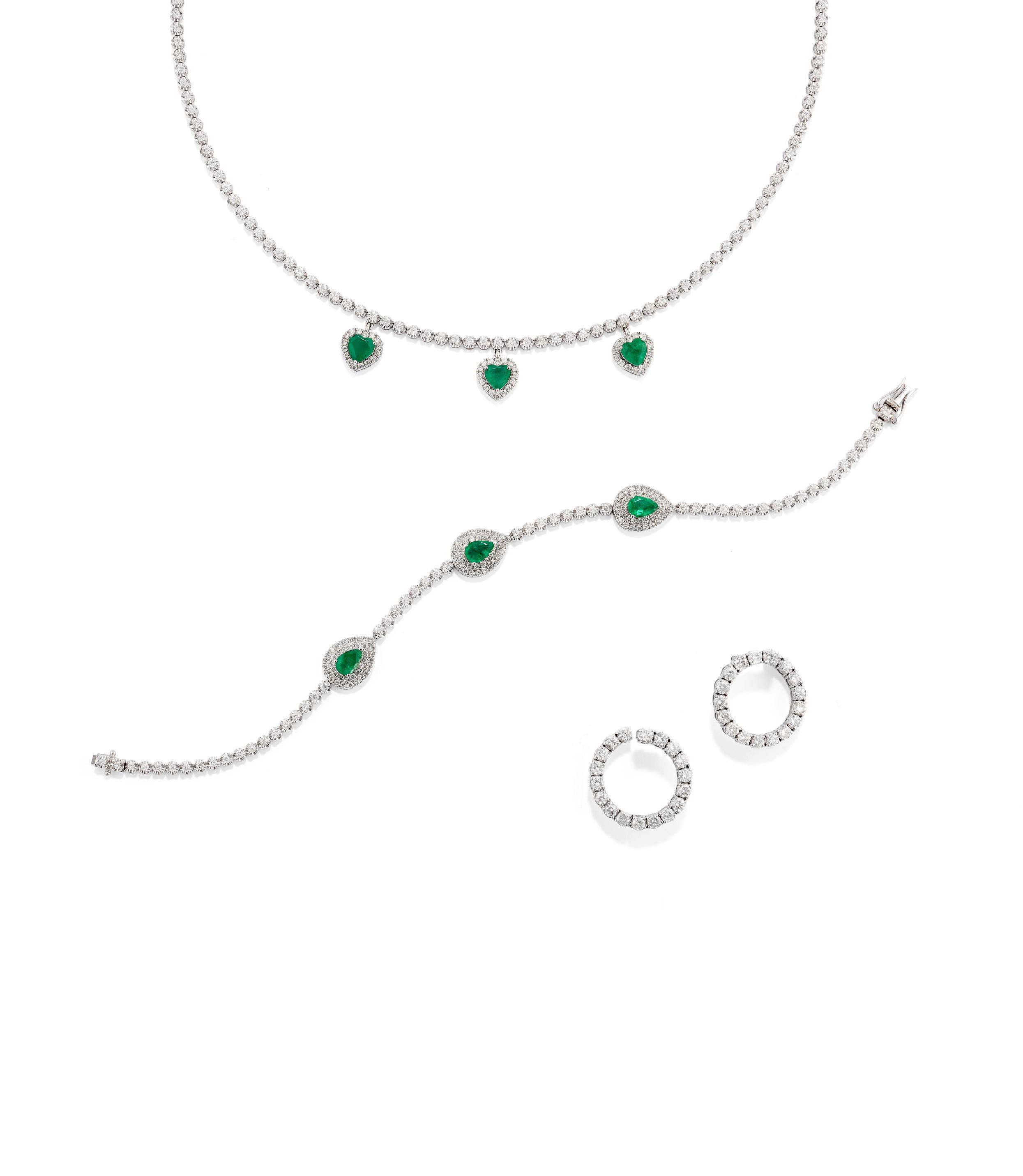 MULTICOLOUR SAPPHIRE NECKLACE, 18k white gold, with heart-cut multicolour sapphires totalling approx. ct 6,00, round-cut emeralds and brilliant-cut diamonds.