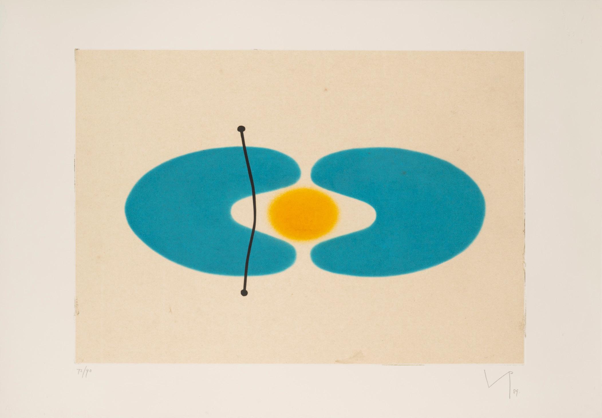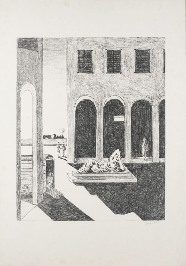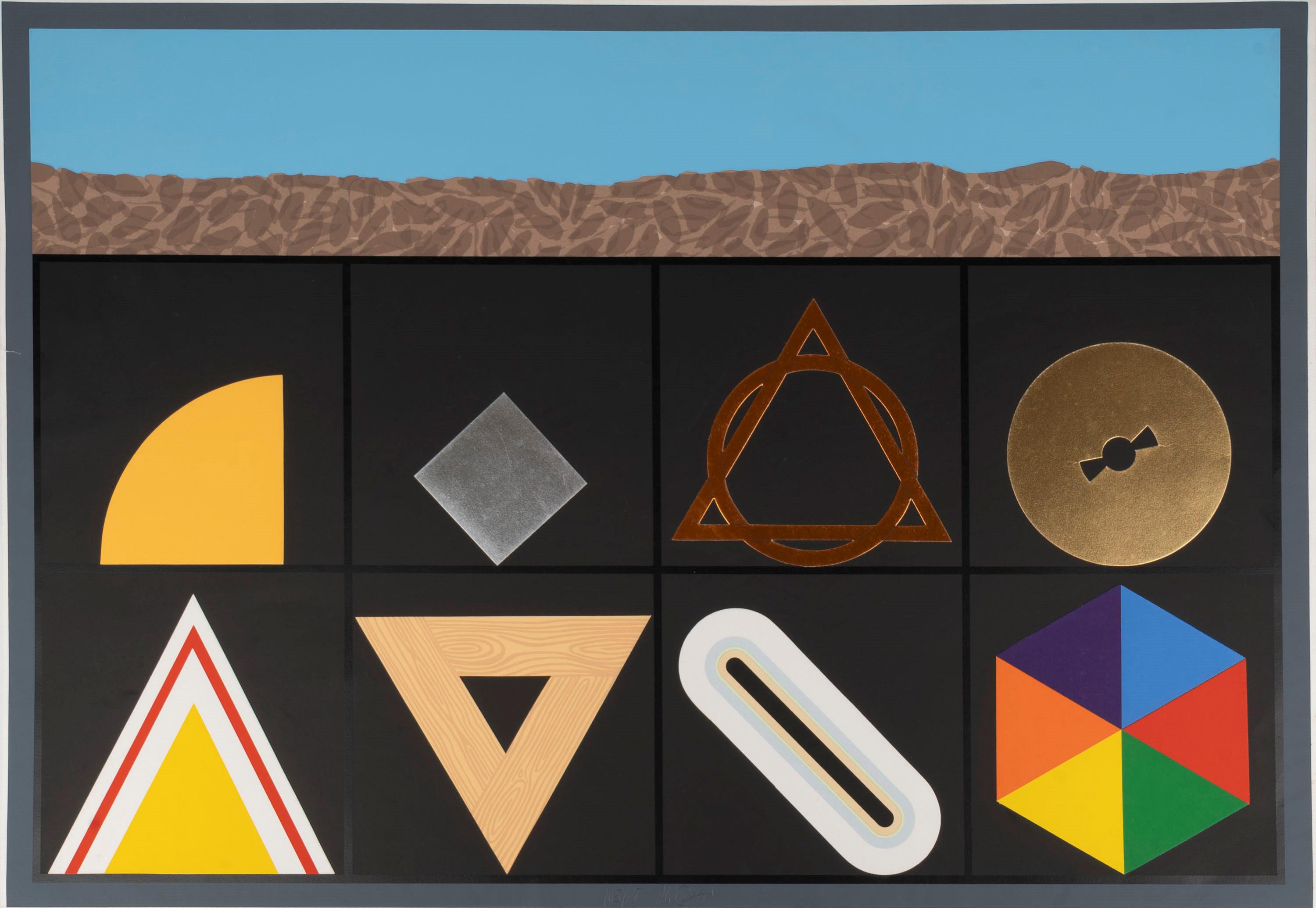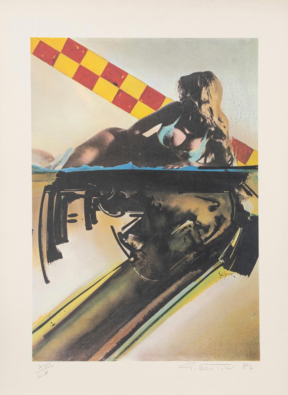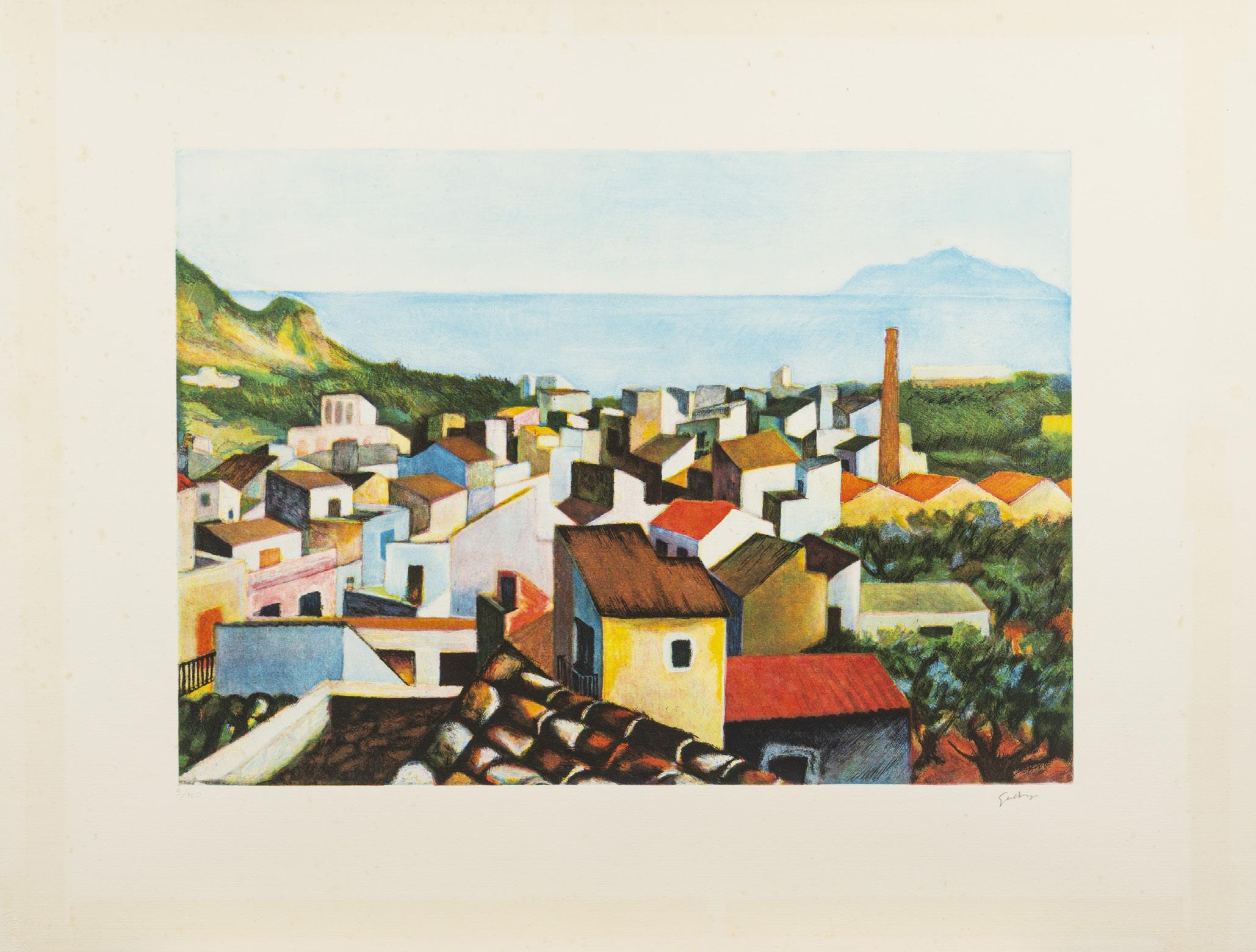 Composizione con tempio e barca serigrafia a colori, es. P.A.