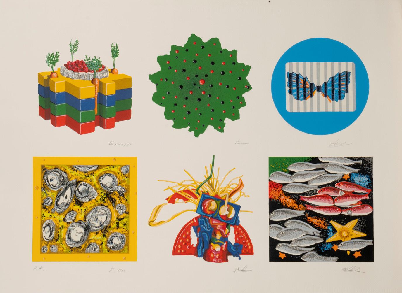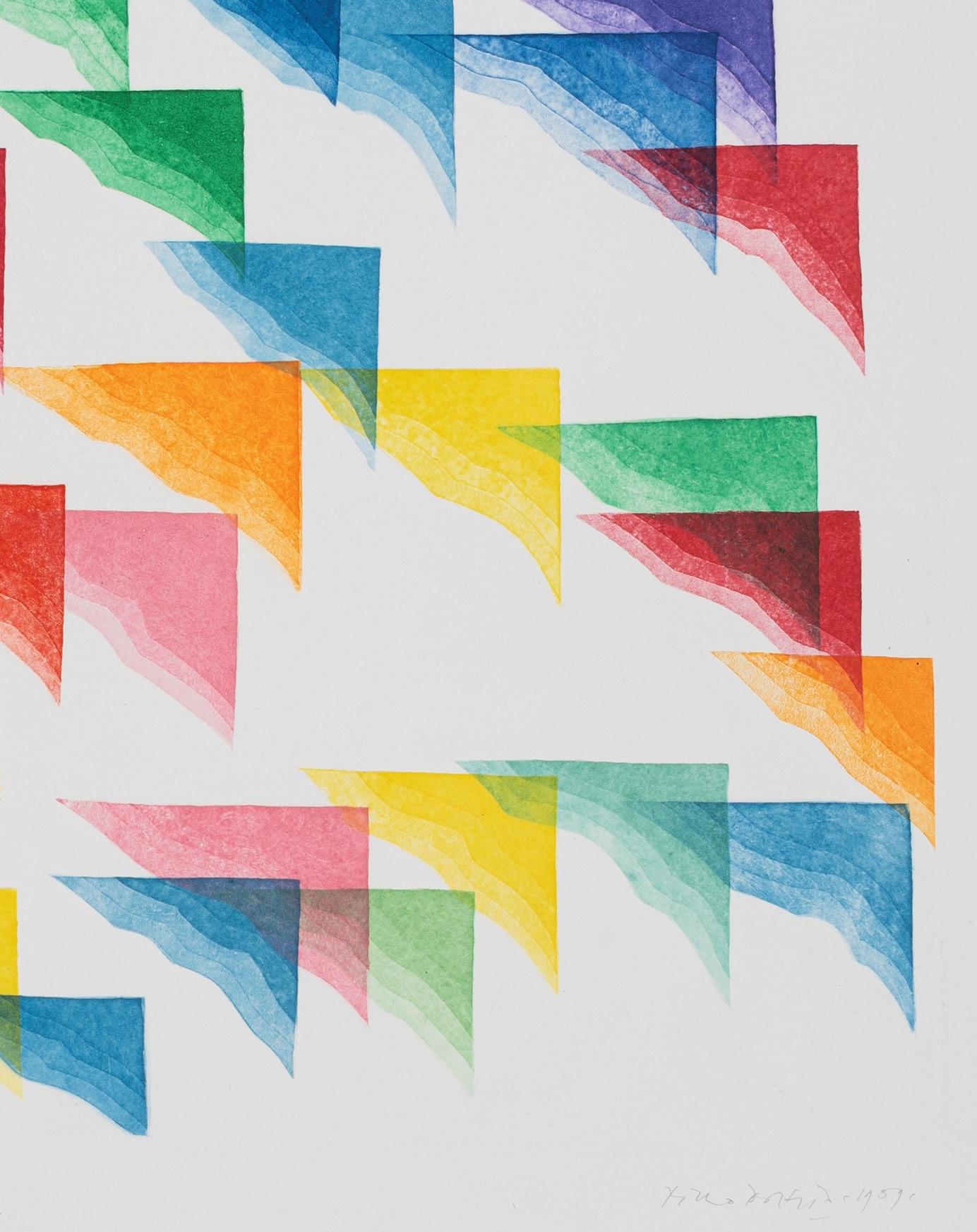 Composizione con rombi acquaforte acquatinta a colori, es. 74/80