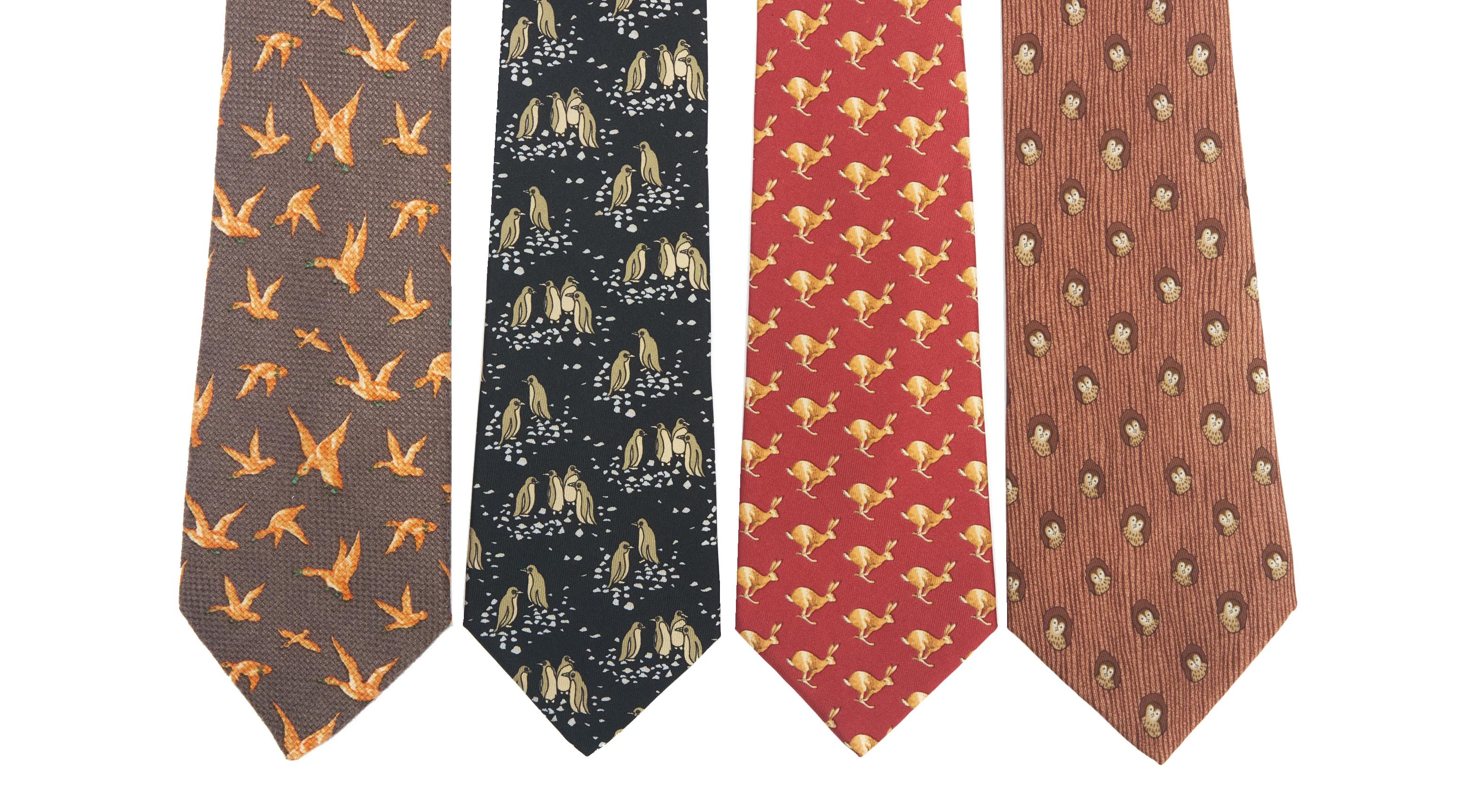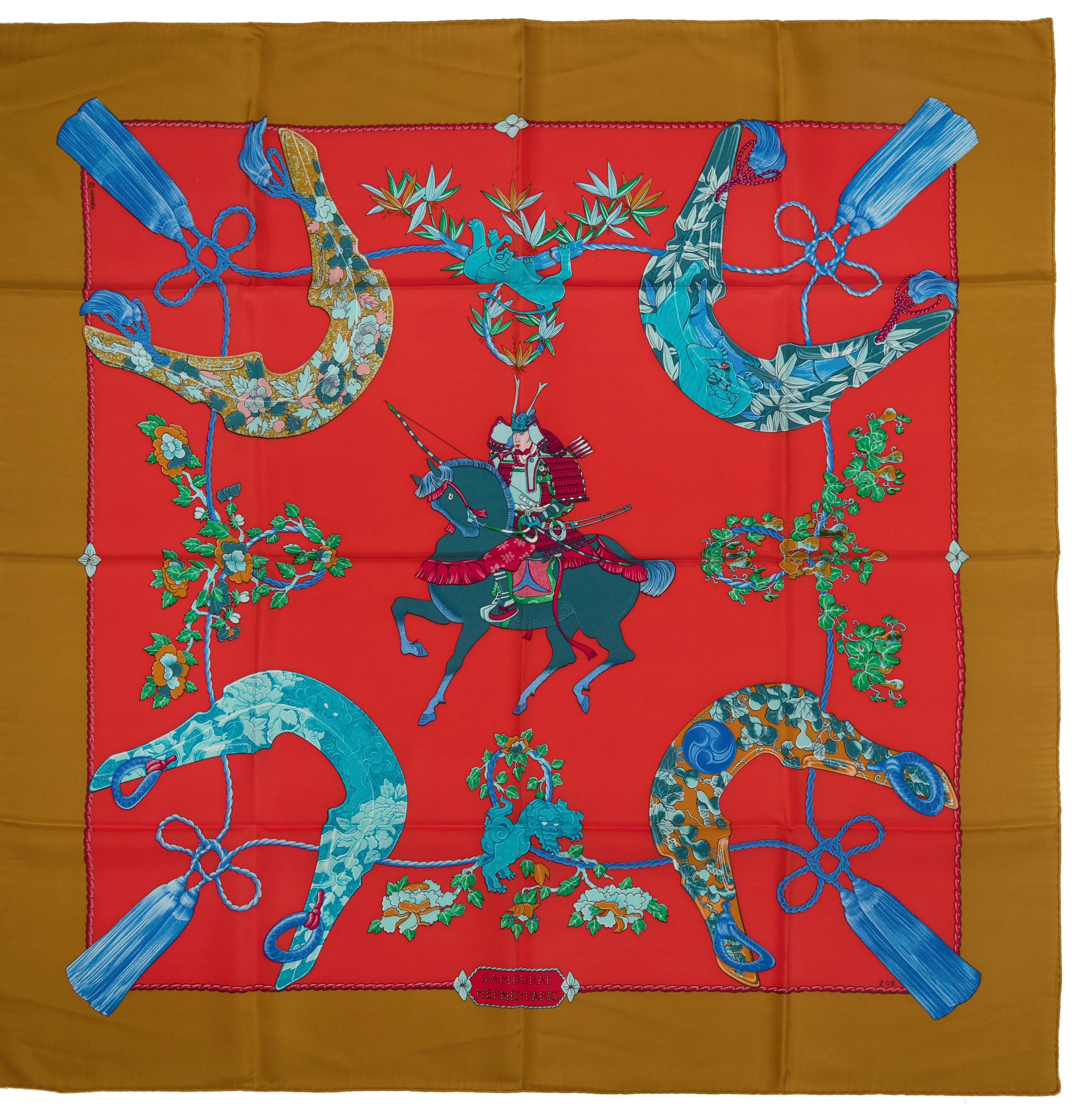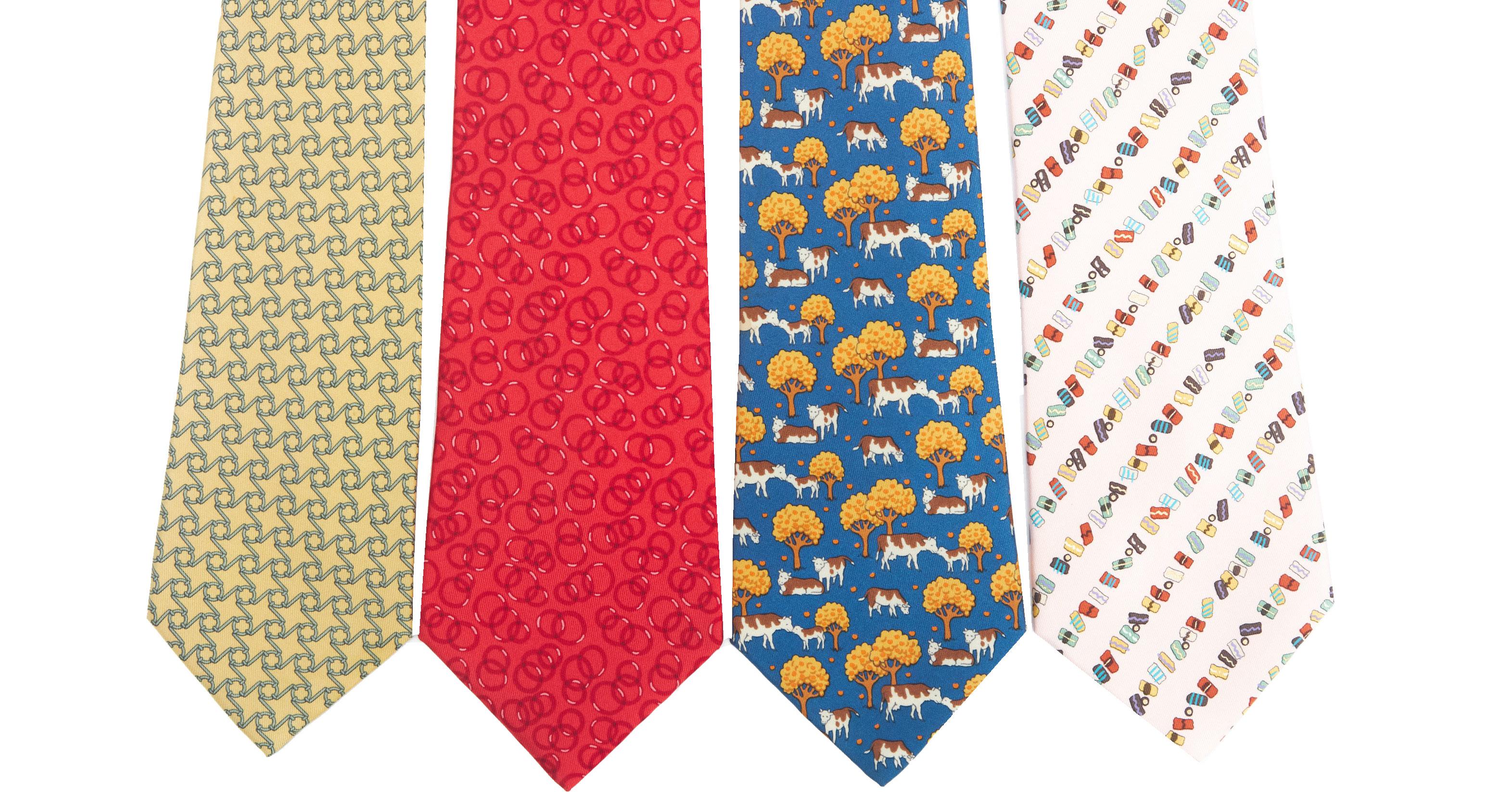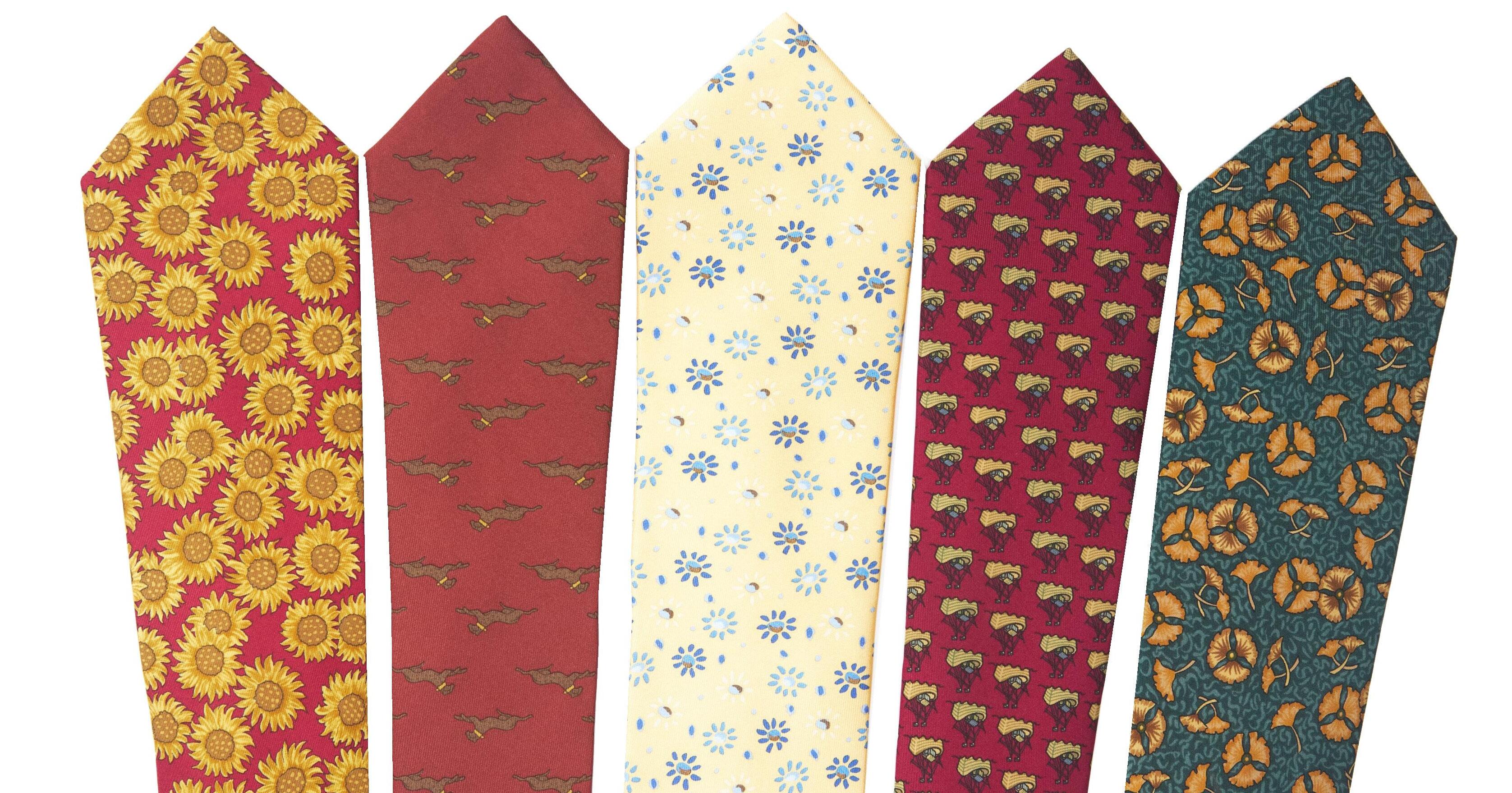Two silk hair accessories with different patterns and colors, with box