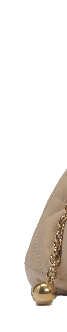 PORTA TELEFONO in pelle matelassé color bronzo, tracolla a catena in metallo brunito, cm 9 x 13, con sacchetto e scatola, 2006