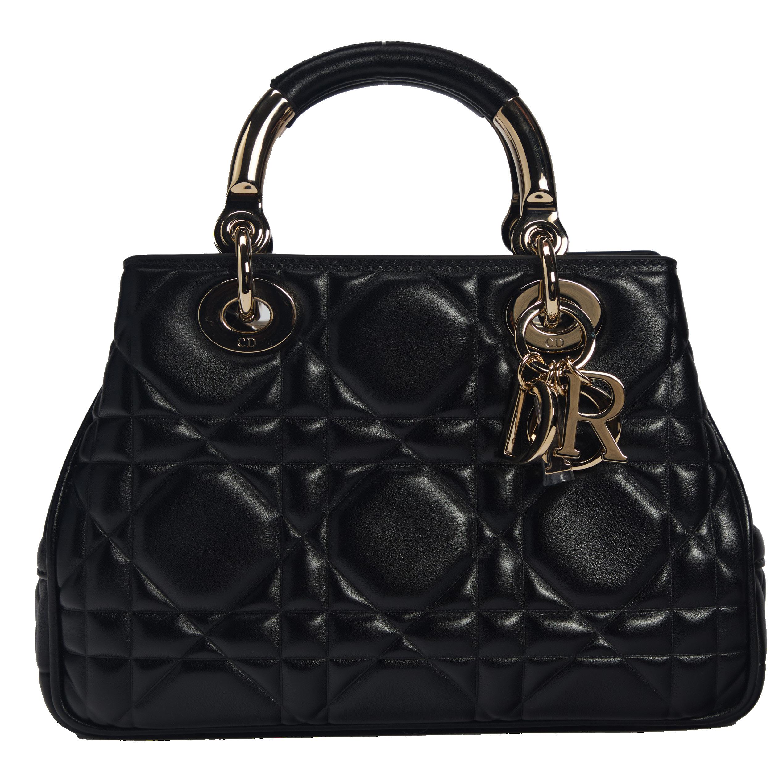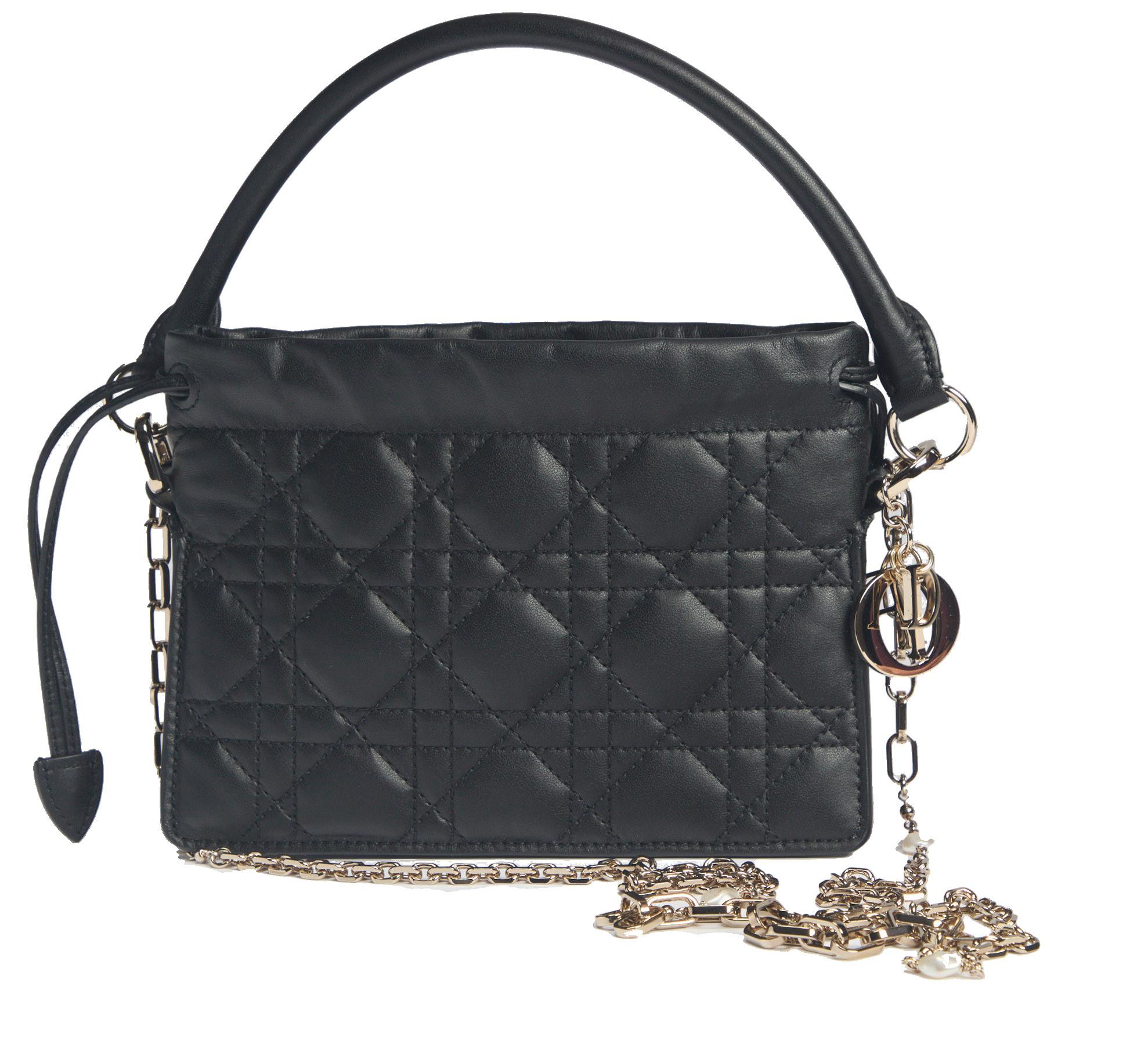 in pelle matelassé color nero, tracolla a catena in metallo, (sticker interno staccato, card presente), cm 30, con sacchetto (lievi difetti), 2011
