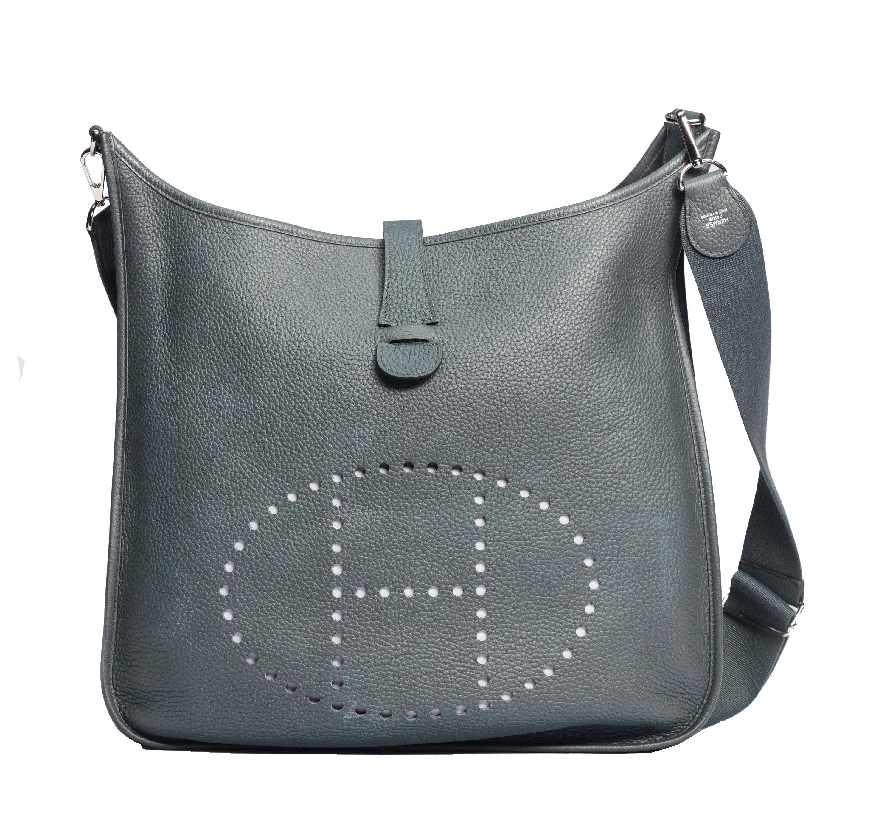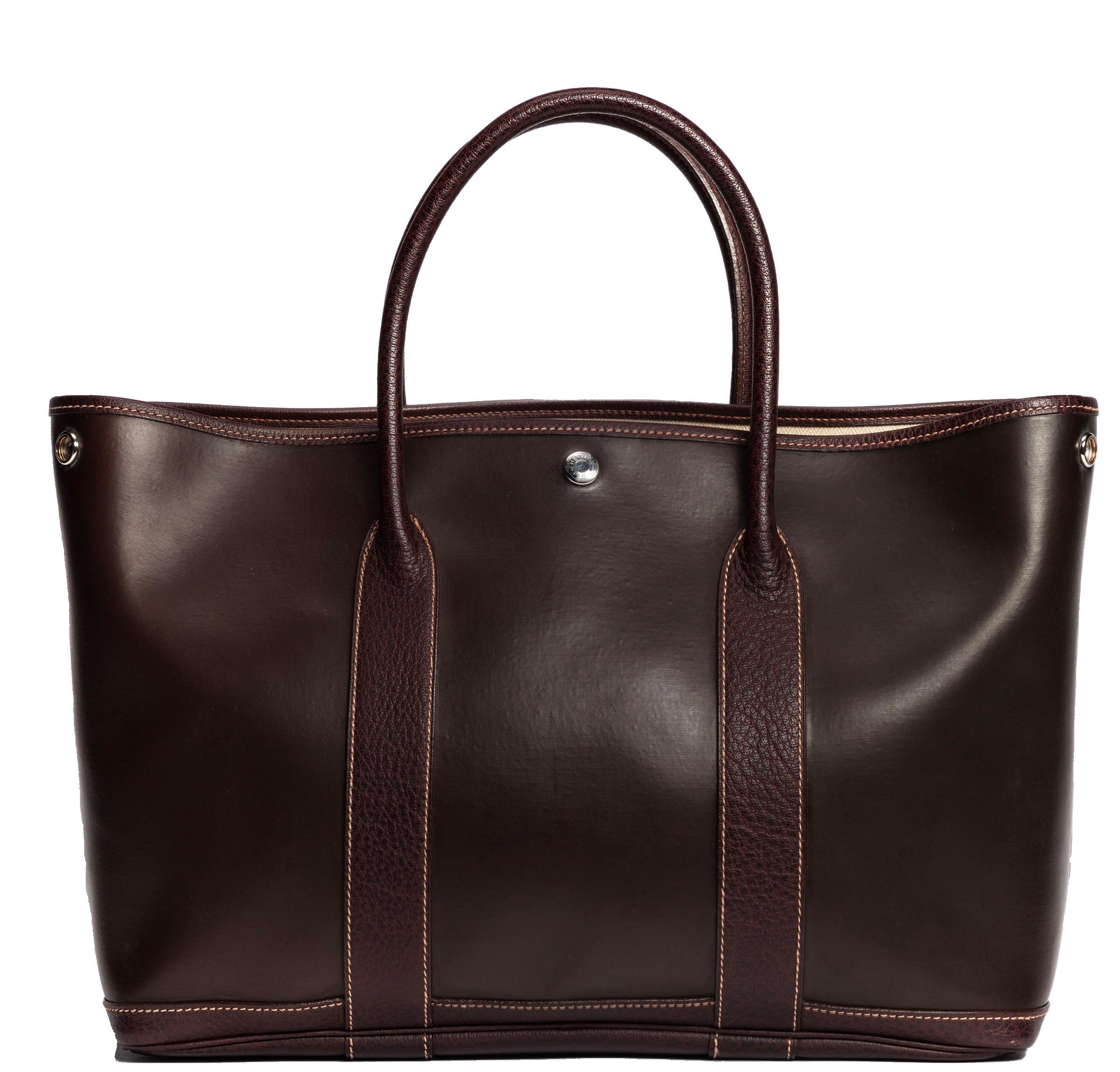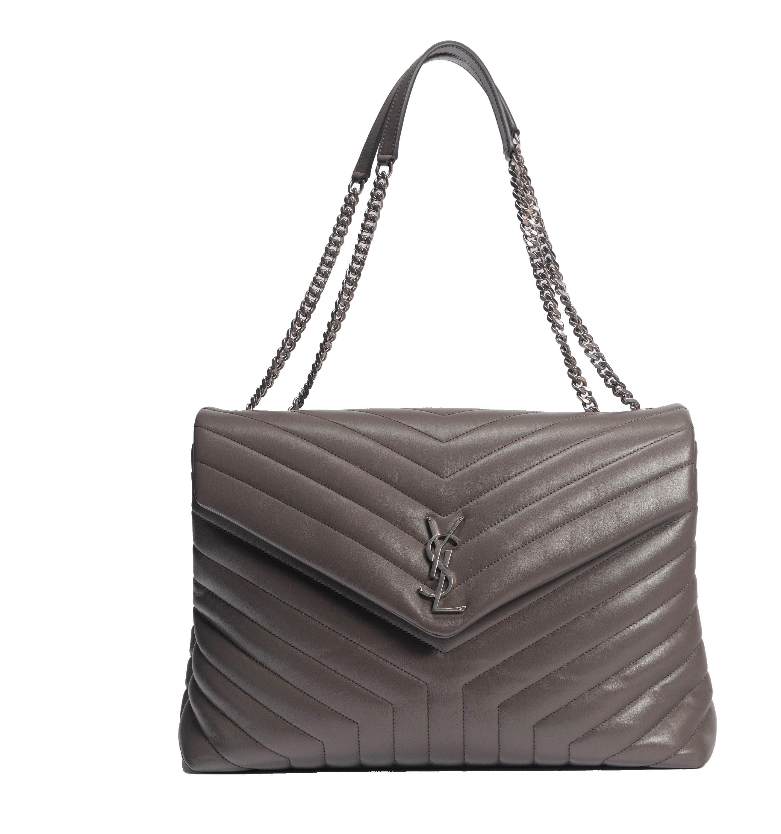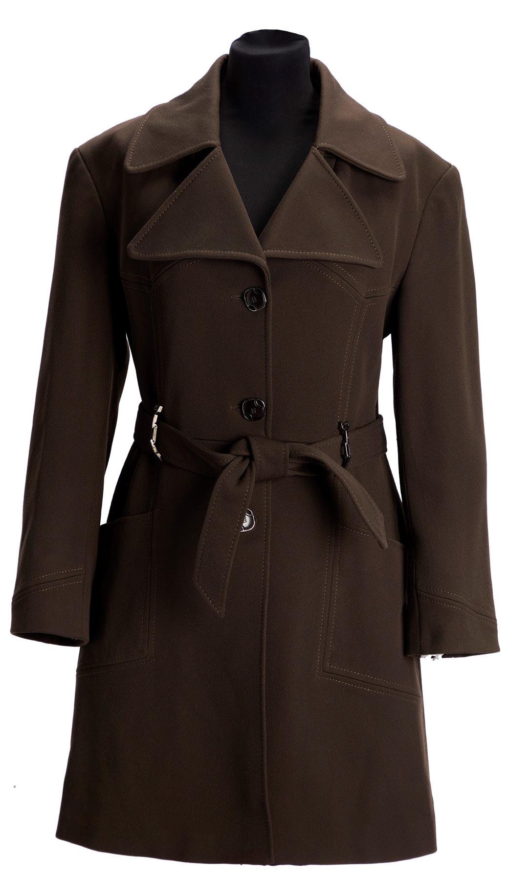 in pelle color tortora, doppia tracolla a spalla, dettagli in metallo, interno in tessuto, cm 30 (base), con sacchetto, 2009