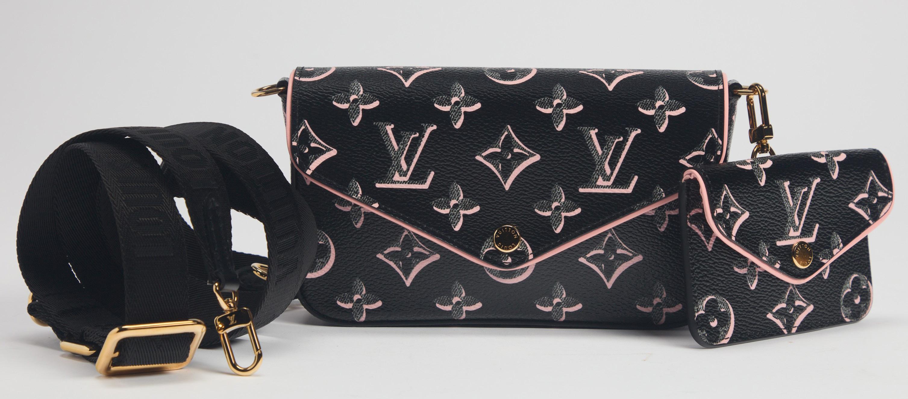 Black matelassé leather coin purse and cardholder, pink fabric inside, cm 11, with dustbags and boxes, 2023