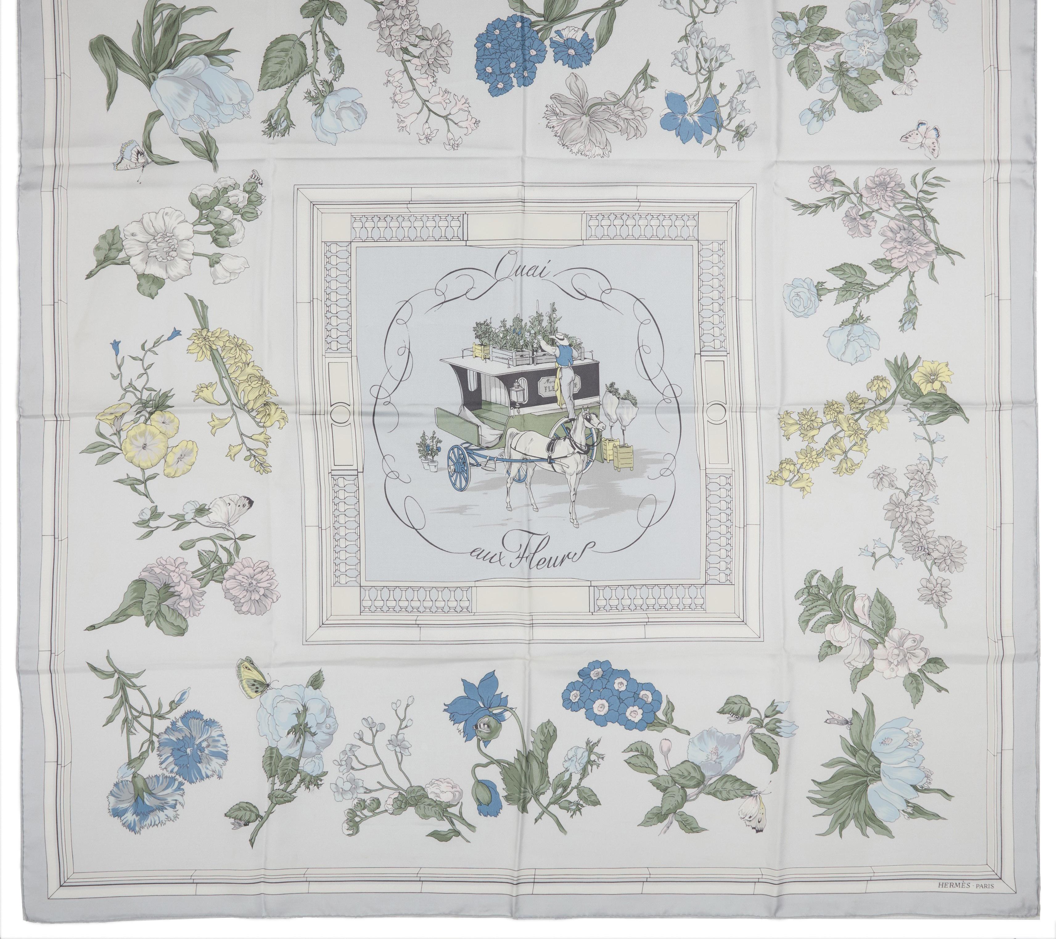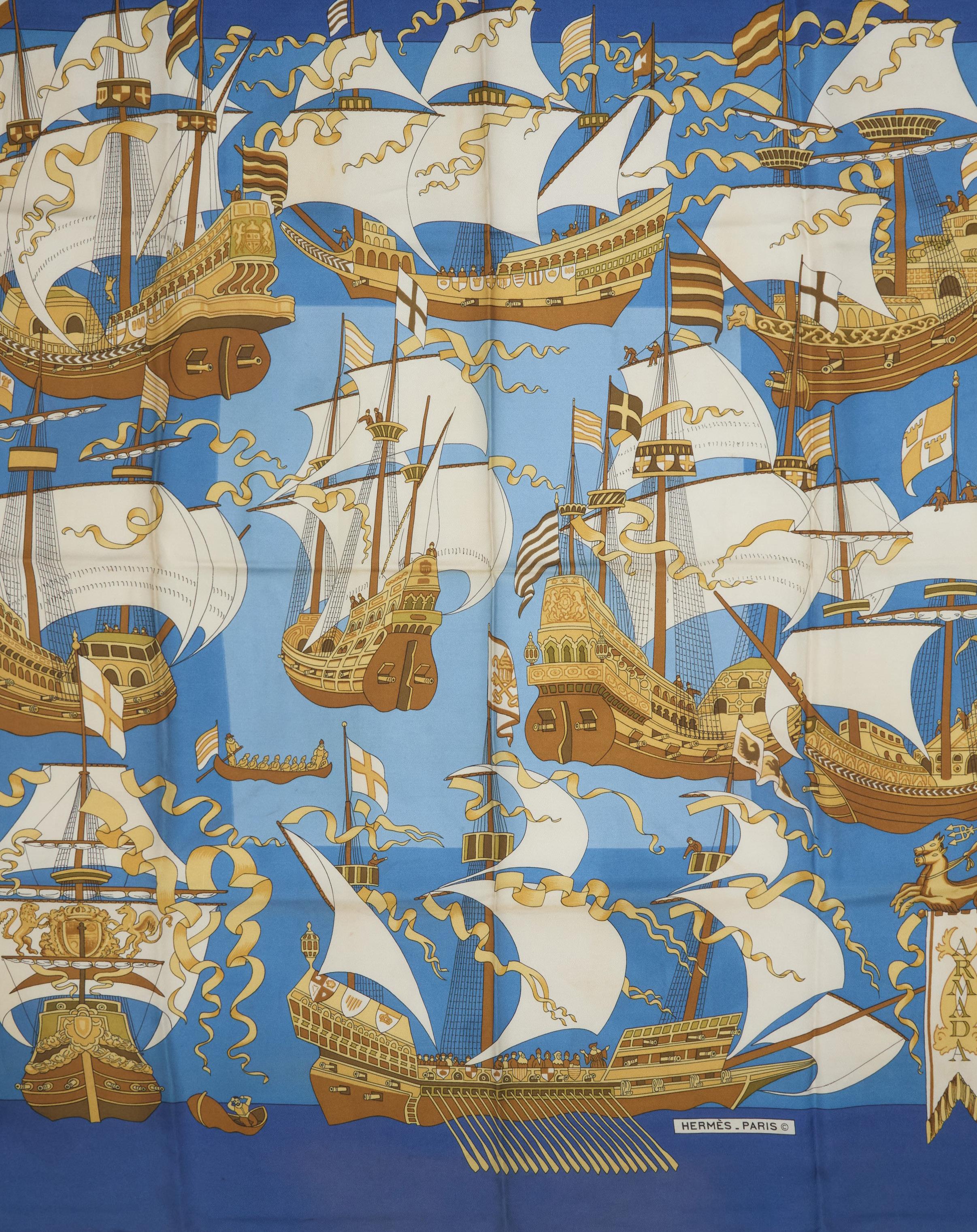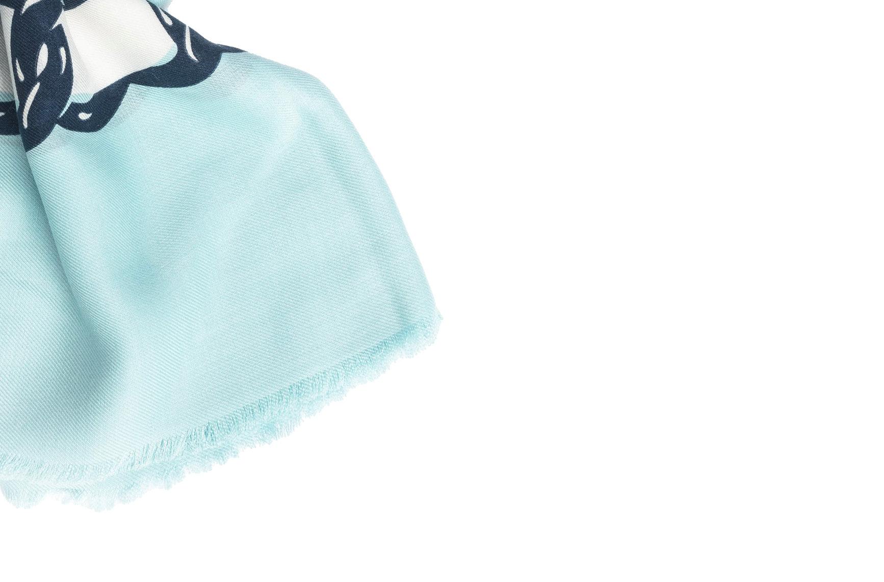 in cachemire e seta, stampa a catene blu su fondo azzurro, cm 200 x 110