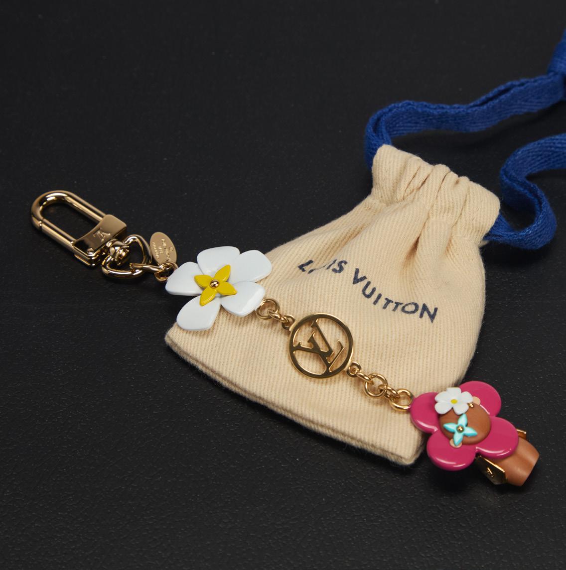 BORSA 22 MINI in tessuto con ricami e motivi foreali colorati, tracolla a catena e in pelle color rosa, dettagli in metallo dorato satinato, cm 23, con sacchetto (nuova e mai usata), 2024