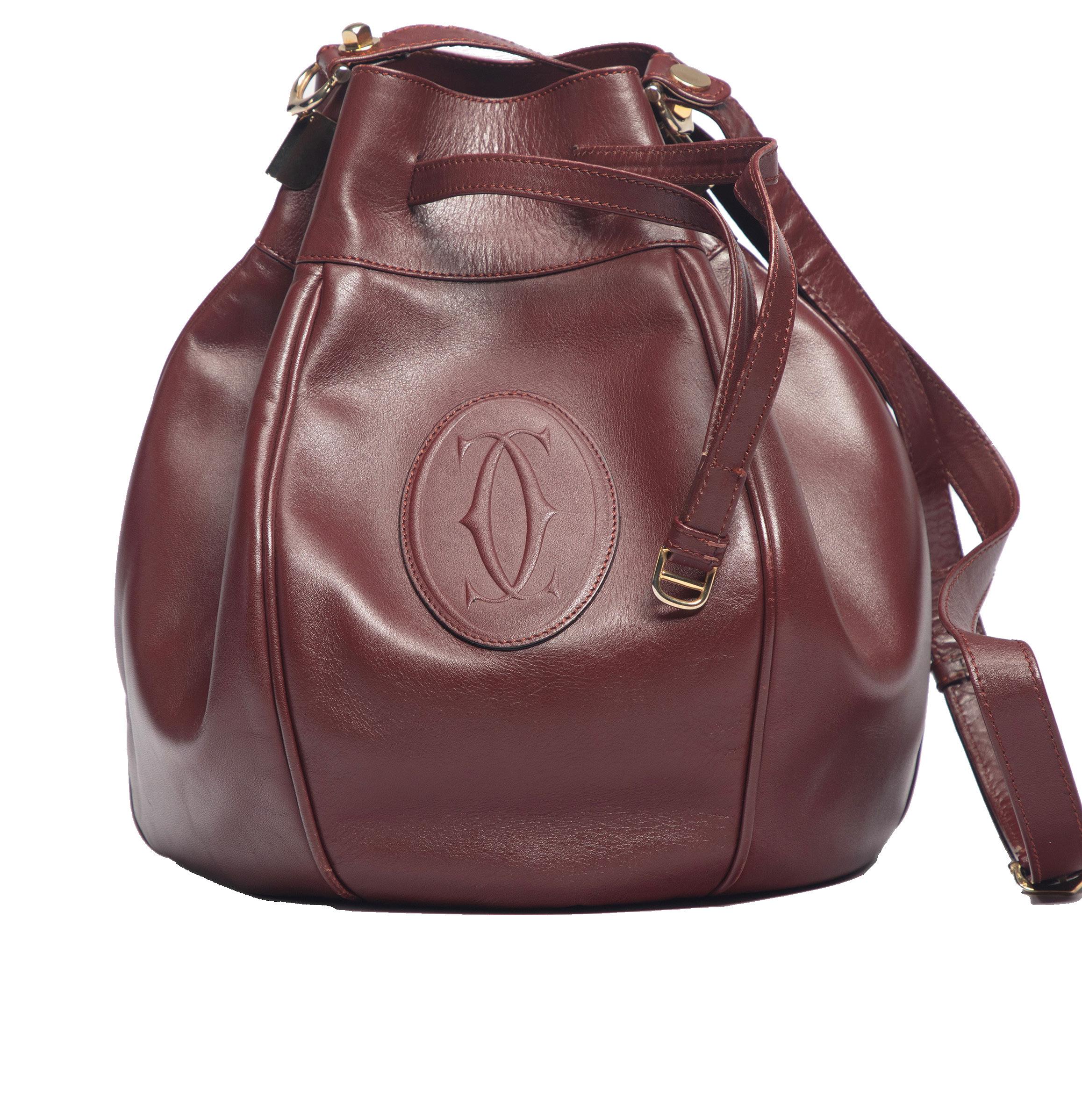 Burgundy velvet small drawstring bag, metal gilt details, cm 15, with dustbag, 2020