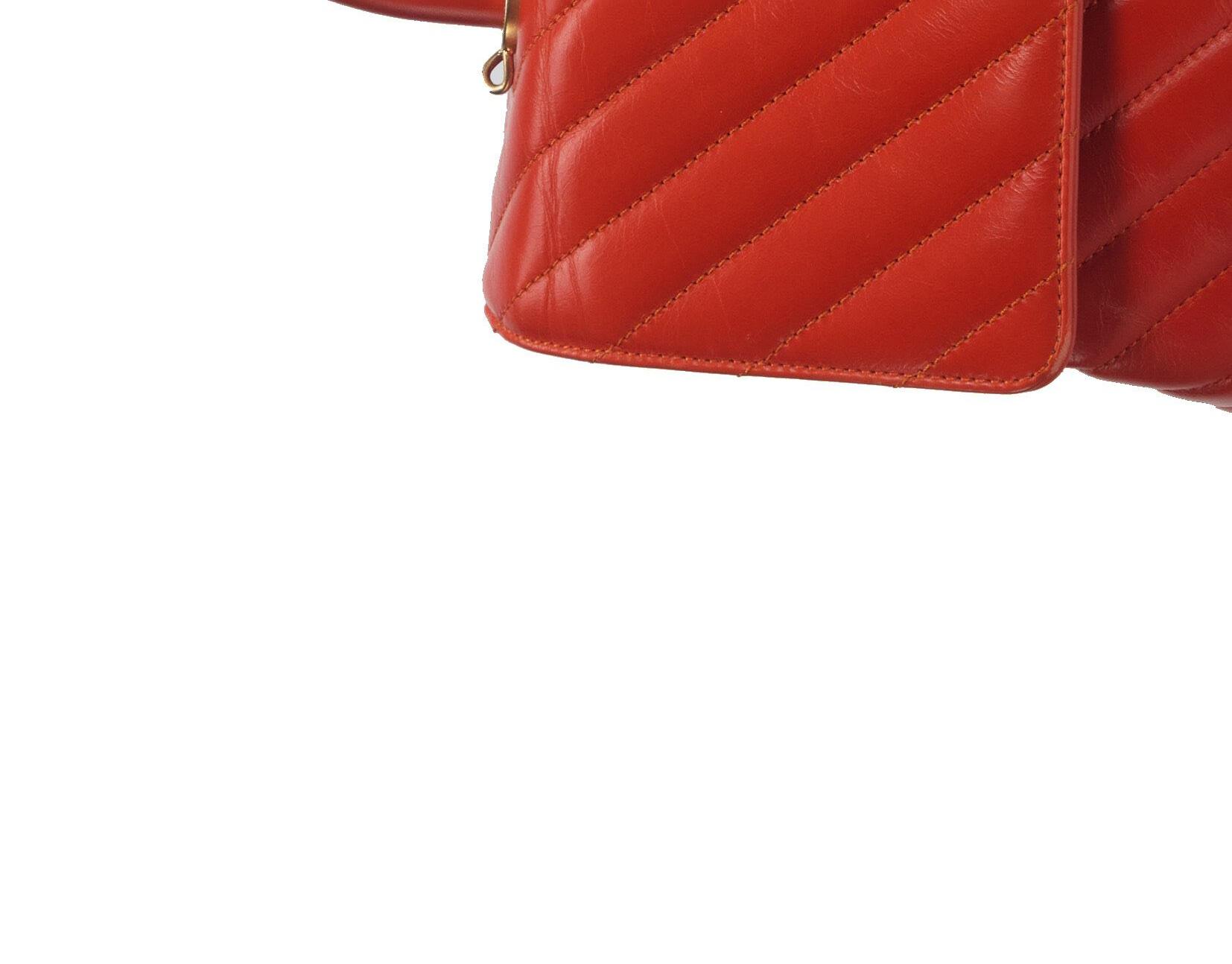 in pelle matelassé bicolore rosa e arancio, dettagli in metallo dorato, cm 24, con sacchetto (nuova e mai usata)