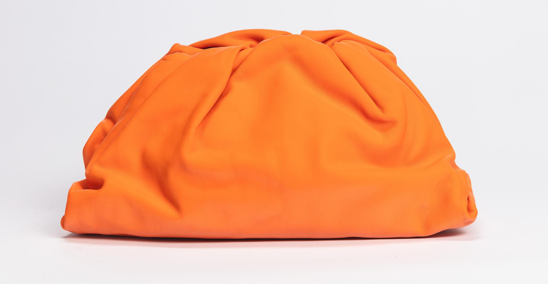 Pink and orange matelassé leather pouch, metal gilt details, cm 24, with dustbag (new and never used)