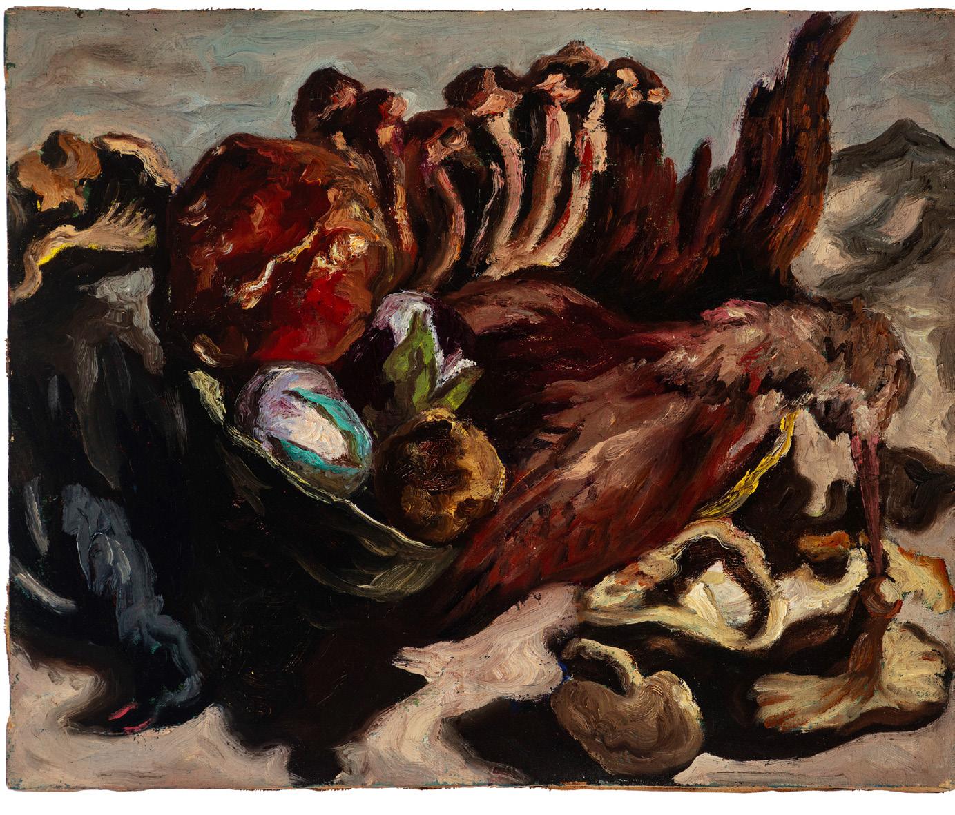 Natura Morta con conchiglia, spugna e bottiglia olio su tavola