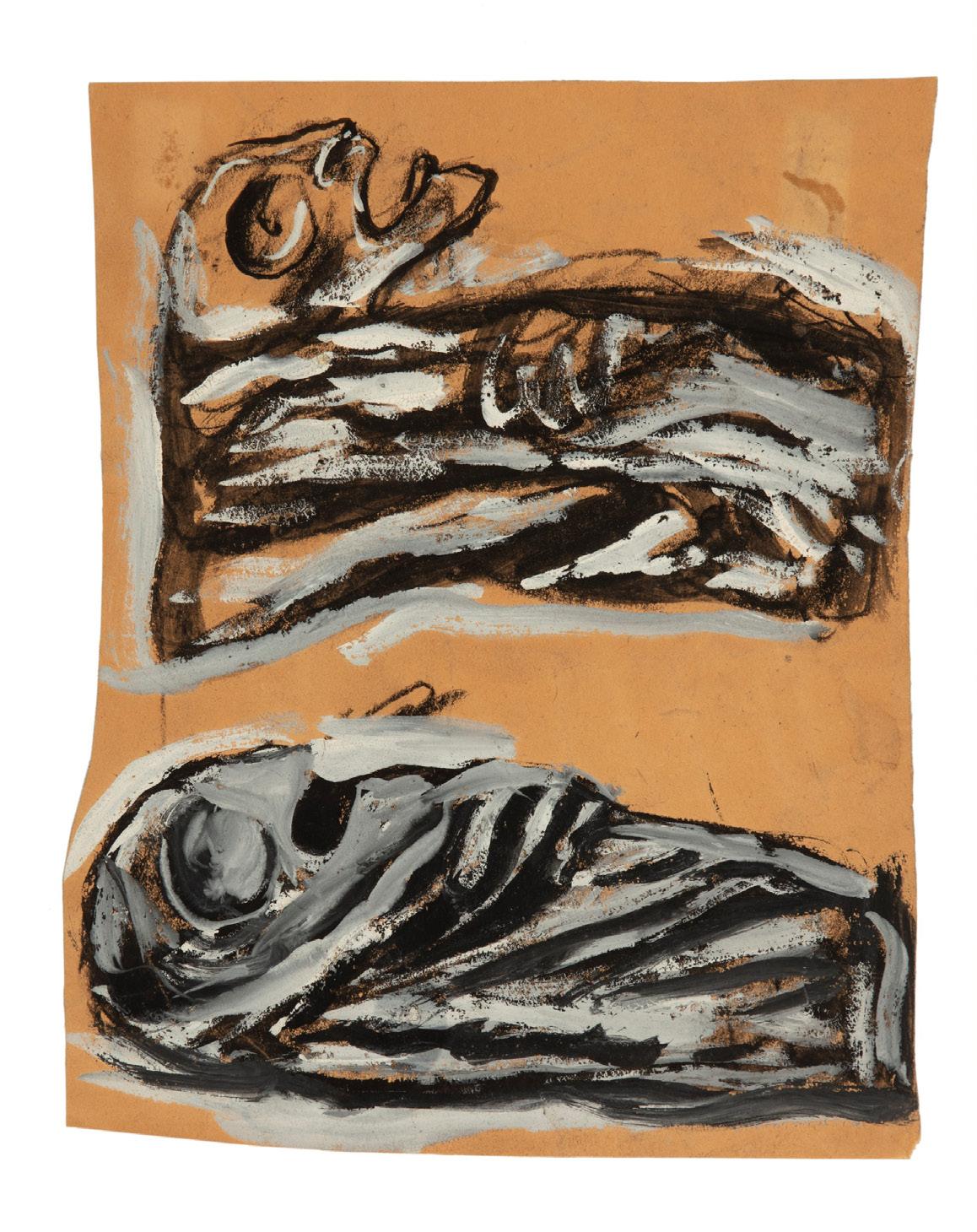 Due figure grottesche, 1947 ca. tempera e matita grassa su carta cm 21 x 26,3 ca.