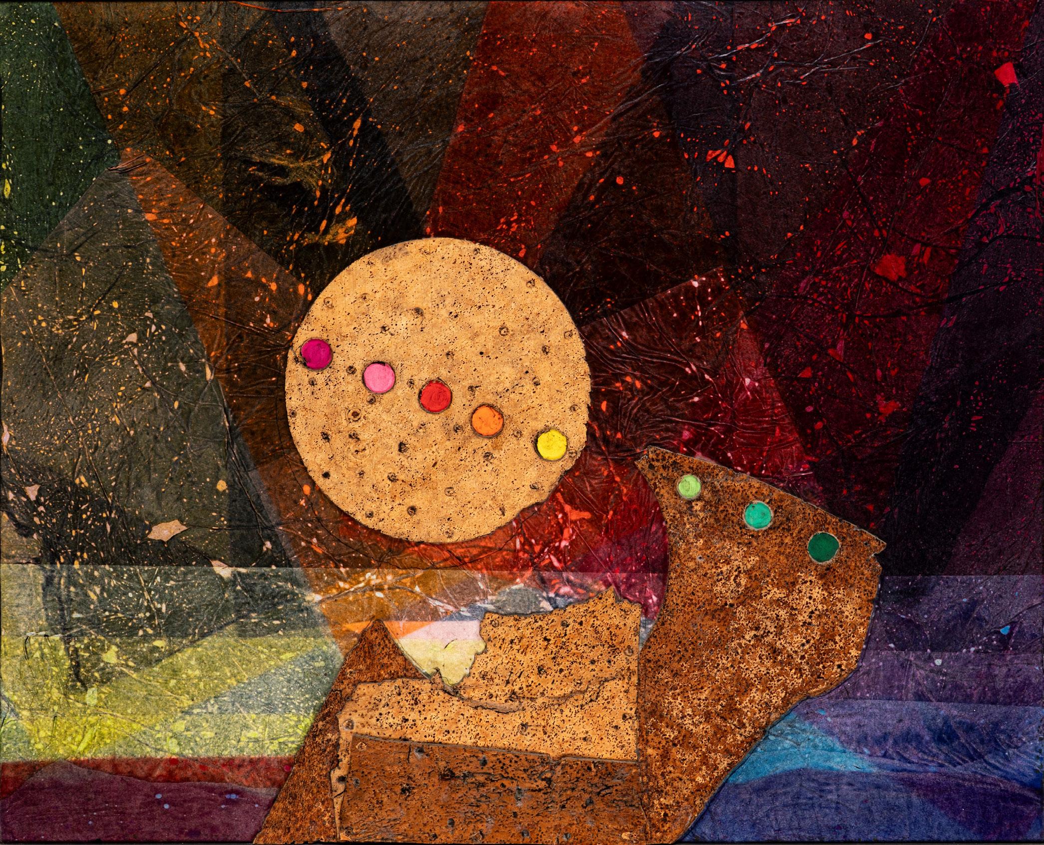 Gesù tra i ladroni, pastelli cerosi su carta applicata su tela cm 48 x 33