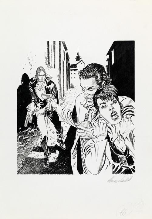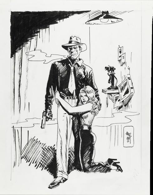 Illustrazione originale realizzata da Bernet per il suo Torpedo durante gli anni ‘90. Antieroe per antonomasia, Torpedo è protagonista di uno dei fumetti noir più amati e celebrati dal pubblico di tutto il mondo che rese l’artista spagnolo il maestro indiscusso di questo genere. Firmata.