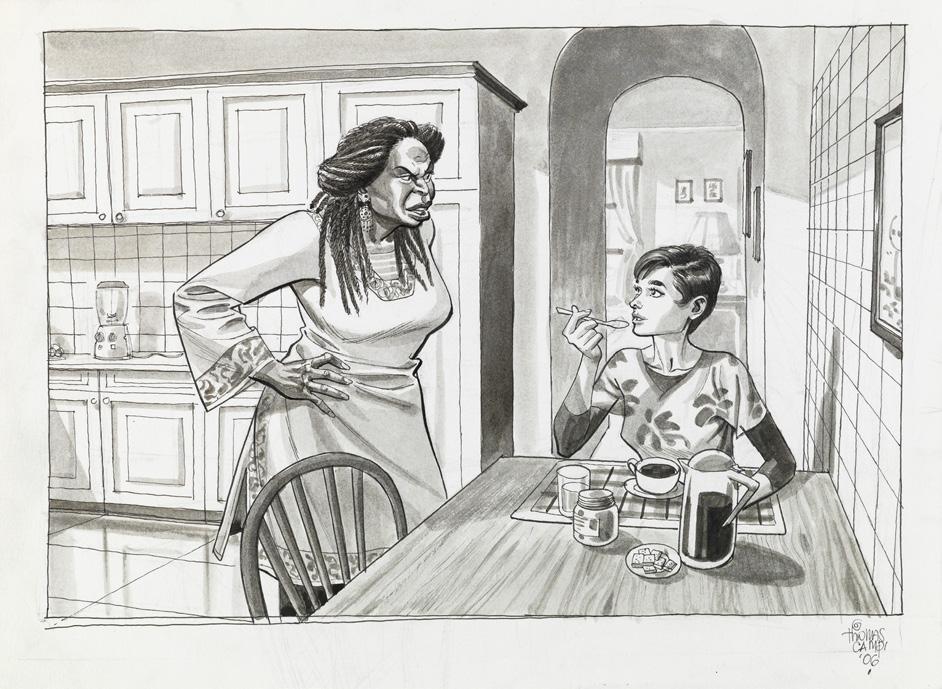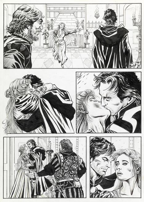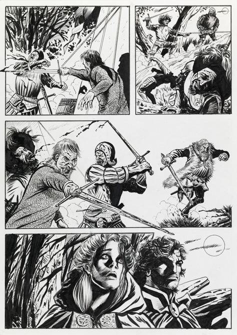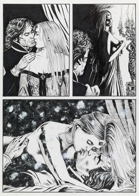 Illustrazione originale realizzata da Battaglia per il volume “20 secoli con Cristo”, edito dalle Edizioni San Paolo nel 1982. Opera recentemente pubblicata sul volume “Dino Battaglia: la perfezione del grigio tra sacro e profano” a pag. 162 da Lo Scarabeo nel 2019. Un pezzo da museo.