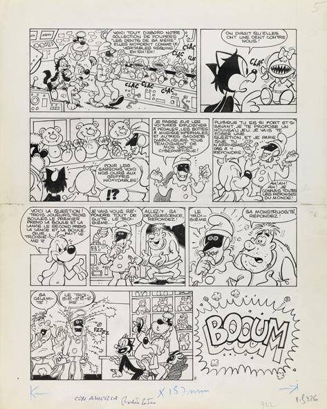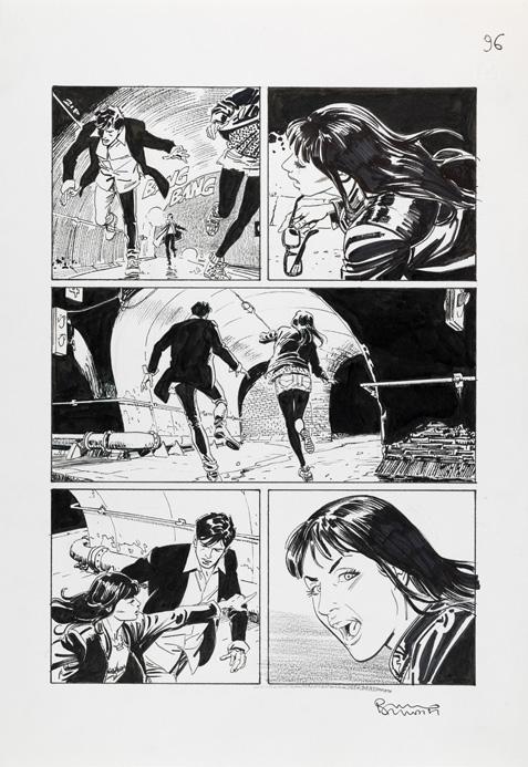 Pencil and ink on thin cardboard. Complete story consisting of 2 original comic arts made by Bernet for adventure n. 655 of “Clara di notte” first published in the Spanish magazine El Jueves in the 1990s. A typical night at work for our Clara, written with biting irony by Trillo and masterfully drawn by Bernet. Signed on both pages.