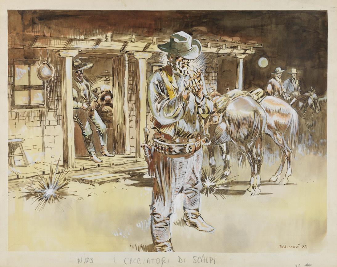 Pencil, ink and watercolor on thin cardboard. Original illustration made by Battaglia for the volume “20 Centuries with Christ”, published by Edizioni San Paolo in 1982. This work was recently published in the volume “Dino Battaglia: The Perfection of Grey between Sacred and Profane” on page 162 by Lo Scarabeo in 2019. A museum piece.