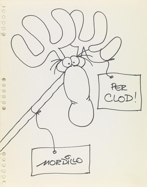 Illustrazione originale realizzata da Altan negli anni ‘80 per una delle sue celebri vignette satiriche raffiguranti il metalmeccanico comunista Cipputi. Opera pubblicata sul volume “Dieci anni Cipputi!” a pag. 110 dalla Bompiani nel 1987. Firmata.