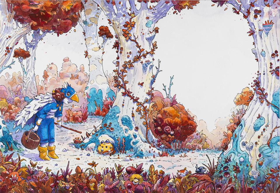 Originale di copertina (e quarta di copertina) realizzato da Barbucci per “Ekho: Mondo specchio - Il segreto dei Preshaun”, pubblicato per la prima volta in Francia da Soleil Productions nel 2016 e successivamente in Italia da Bao Publishing nel 2019. Live piega all’angolo inferiore sinistro. Firmato e datato.