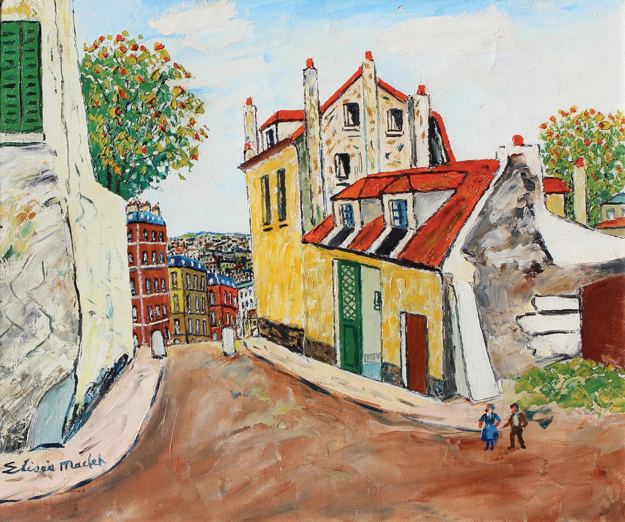 On the other hand, Élisée Maclet’s works burst with a joyous energy that is both uplifting and inspiring. Hailing from Picardy, Maclet was utterly enchanted by Montmartre’s light and color. His paintings, alive with bright hues and whimsical perspectives, celebrated the bustling squares and hidden alleys with an infectious sense of delight. Maclet’s cheerful interpretations brought the joie de vivre of Montmartre to life, painting a picture of a community alive with laughter and light.