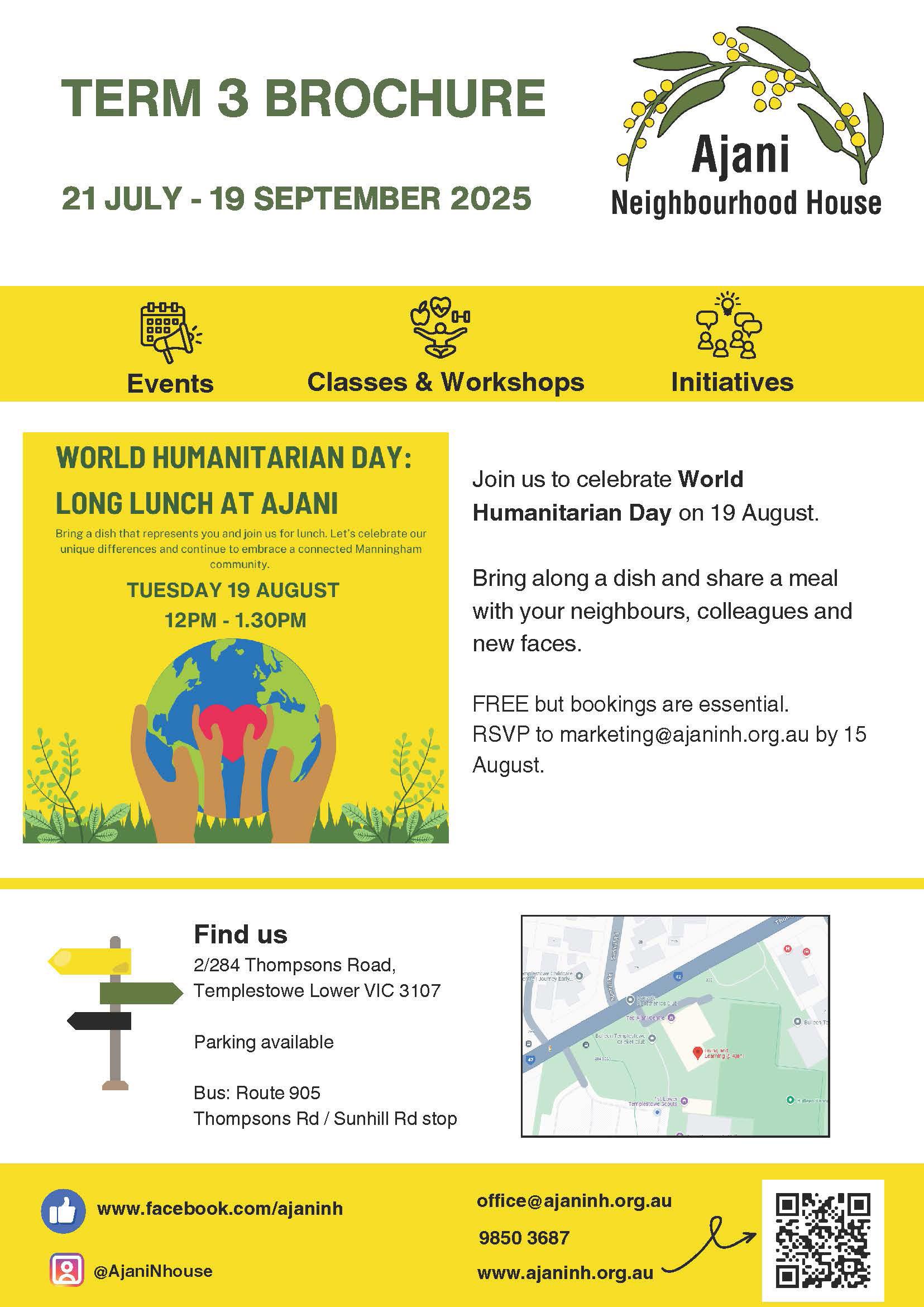 Each school term, we deliver more than 40 quality courses and activities designed to bring people together, build skills and foster lifelong learning. From educational classes and social groups to essential support services, Ajani continues to be a welcoming space for everyone.
