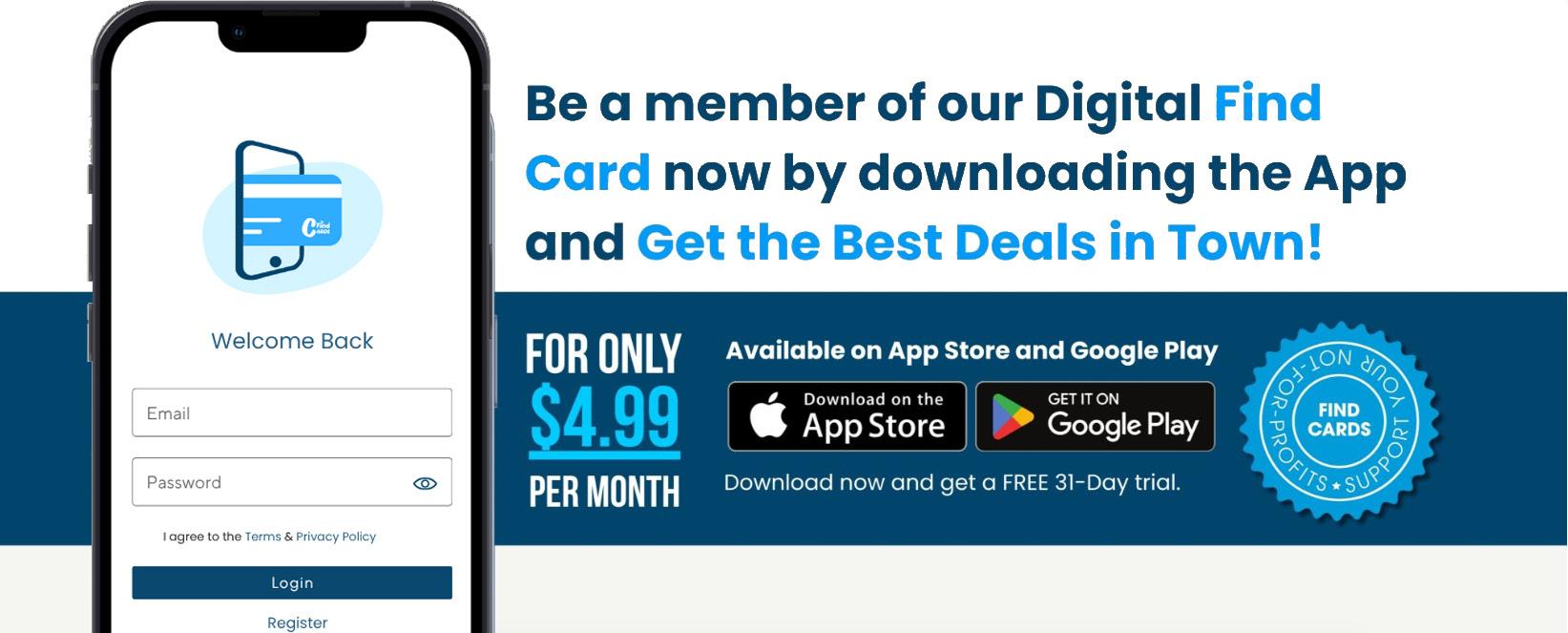 and rolling out over the coming years. Our aim is to help as many NFP and other like organisations to raise much needed funds to help them to keep operating. Our fundraising initiatives will never simply ask for money from you. We will also aim to provide something of worth to you before you part with your hard-earned money. The first initiative is the Find Cards and Find Coupons – similar to the Entertainment Book but cheaper and more localised. Any NFP and similar organisations e.g., schools, sporting clubs, can participate.