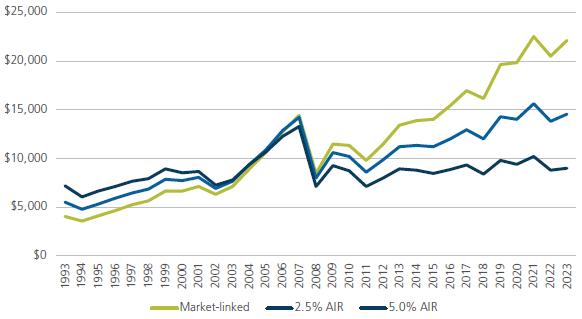 The information in this article is current as at 17 April 2024 unless otherwise specified and is provided by Challenger Life Company Limited ABN 44 072 486 938, AFSL 234670 (Challenger, our, we), the issuer of the Challenger annuities. If you invest in the Flexible Income (Marketlinked payments) or Enhanced Income (Market-linked payments) option, only the first year’s monthly income amount is guaranteed. After the first year, regular payments will index up or down annually so that they adjust with changes in your chosen market-linked payment option. In periods of poor performance, payments can index down below the starting payment. In periods of strong market performance, any Age Pension benefits may reduce to reflect the higher income received. The information in this article is general information only. It is not intended to constitute financial product advice. It has been prepared without taking into account any person’s objectives,financial situation or needs.Each person should, therefore, consider its appropriateness having regard to these matters and the information in the Product Disclosure Statement (PDS) for the relevant product before deciding whether to acquire or continue to hold the product. Any examples are illustrative only and along with statements of opinion, forecasts or predictions based on current expectations; are not a prediction or guarantee of any particular outcome. Past performance is not a reliable indicator of future performance. Actual results may be materially different from those shown. This is because outcomes reflect the assumptions made and may be affected by known or unknown risks and uncertainties that are not able to be presently identified.To the maximum extent permissible under law, neither Challenger nor its related entities, nor any of their directors, employees or agents, accept any liability for any loss or damage in connection with the use of or reliance on all or part of, or any omission inadequacy or inaccuracy in, the information in this article.