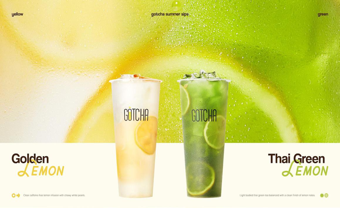 Thai Green Lemon Light-bodied thai green tea balanced with a clean fi nish of lemon notes. Golden Lemon Clear caffeine-free lemon infusion with chewy white pearls. Join Gotcha Perks now to unlock member-exclusive launch offer for just $4 Largre! Two lemon-led sips, stay hydrated in the golden way. #GotchaSummerSips #GotchaFreshTea #ThaiGreen #Lemon #Summer