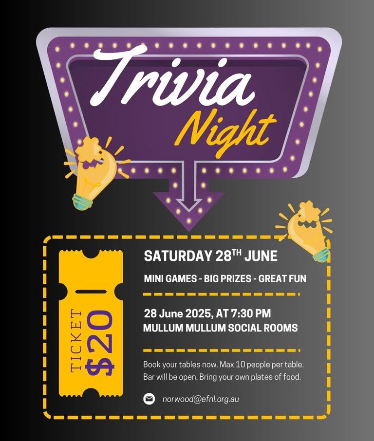 Friday 5th July | 7PM | Norwood Clubrooms