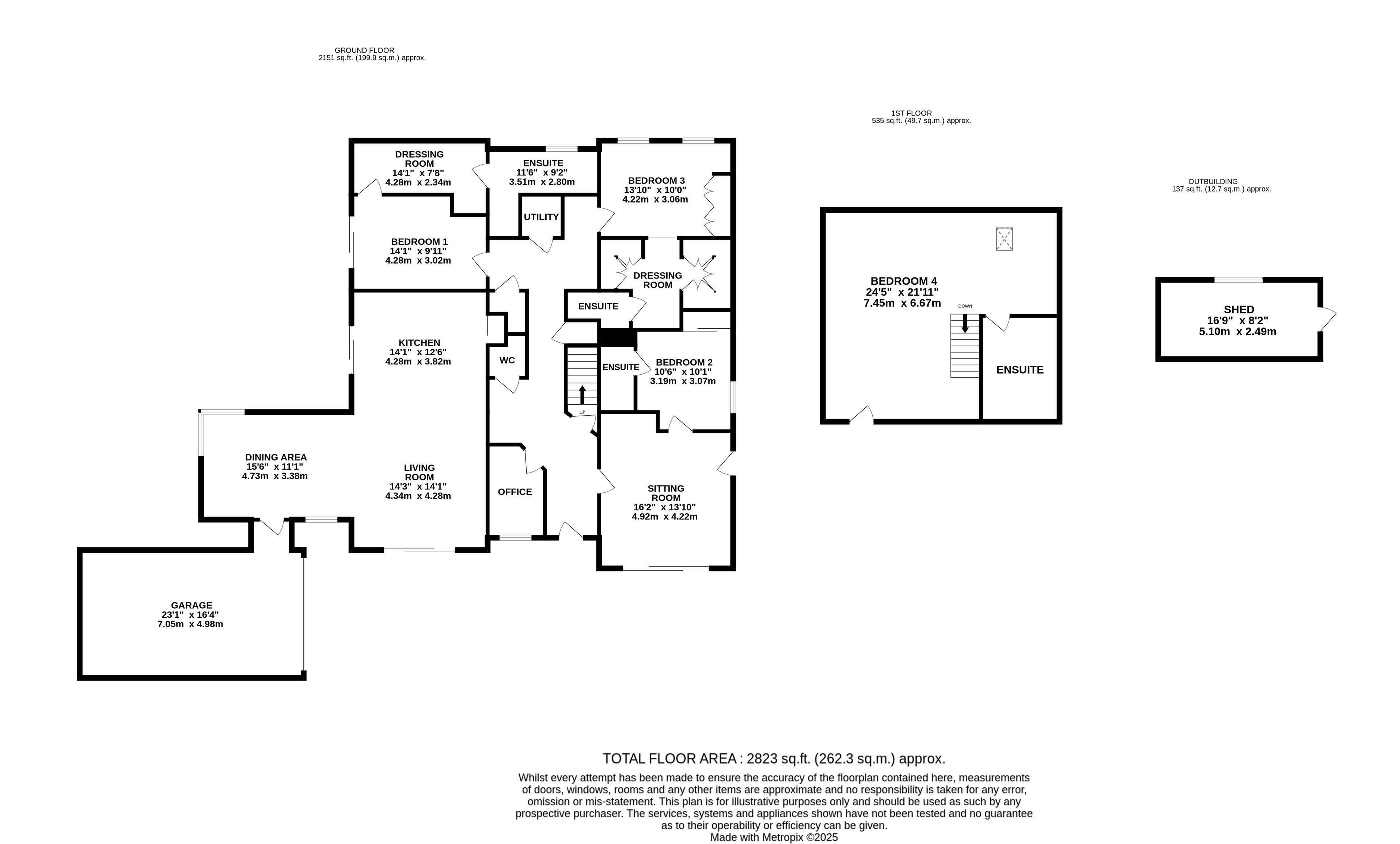 The ground floor has thoughtfully been designed to include a self-contained annex with a separate entrance. This area of the home features a vaulted ceiling, kitchenette, lounge, bedroom with en-suite, and floor-toceiling windows with direct access to the driveway, making it ideal for guests or multi-generational living. There is also the flexibility of using the space extending teh main living areas adding an extra bedroom and reception room aswell as the option having a generous study perfect for a home worker.