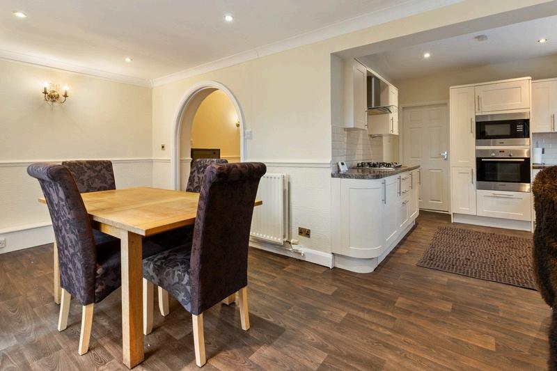 The ground floor has been thoughtfully extended to create multiple reception areas, including a generous lounge, a separate sitting room, and a bright dining room—perfect for both everyday living and entertaining.