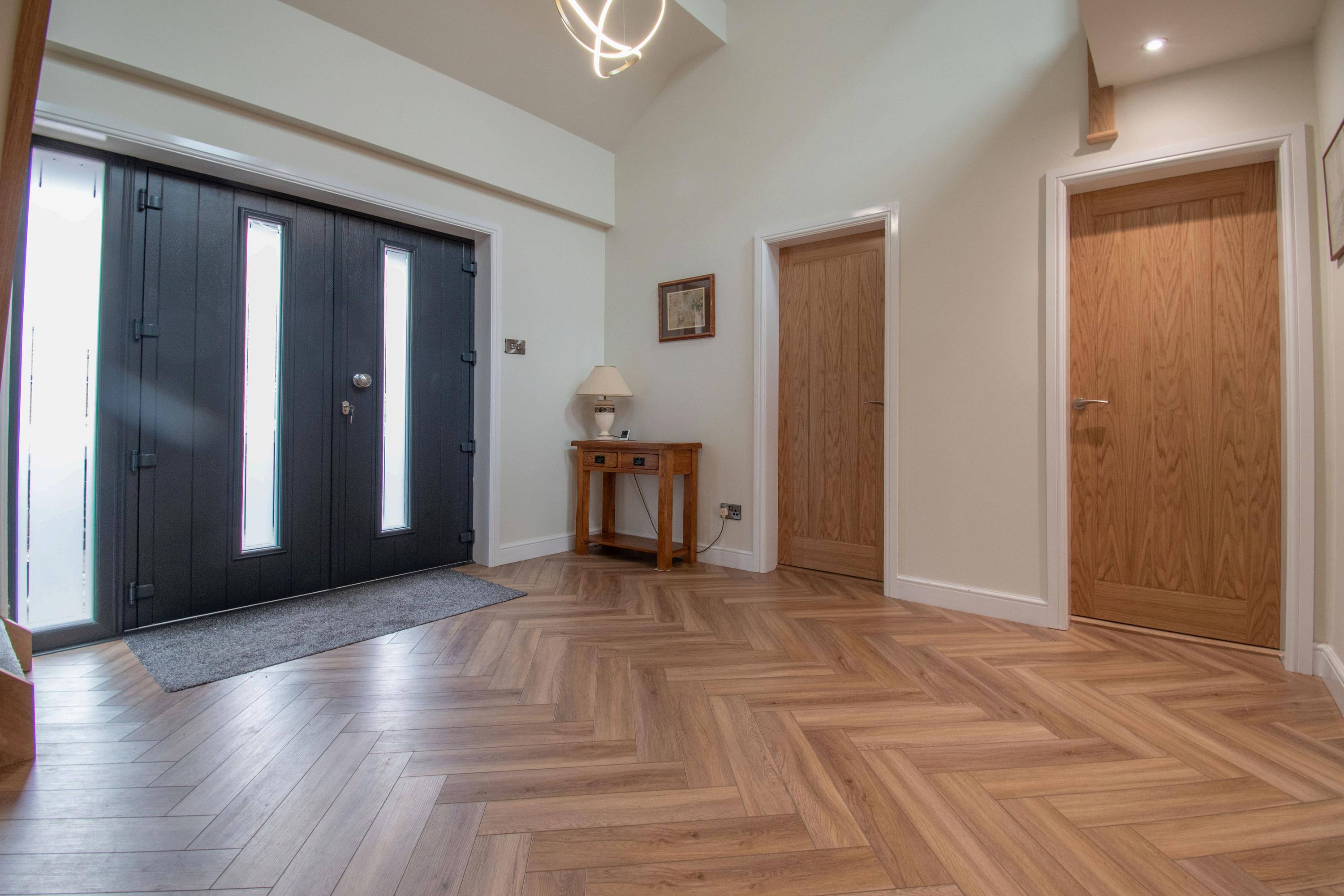 The reception hall leads to two ground-floor bedrooms, one with a modern en-suite. Opposite the second bedroom is a family bathroom with a modern four-piece suite and adjacent access to a first-floor bedroom.