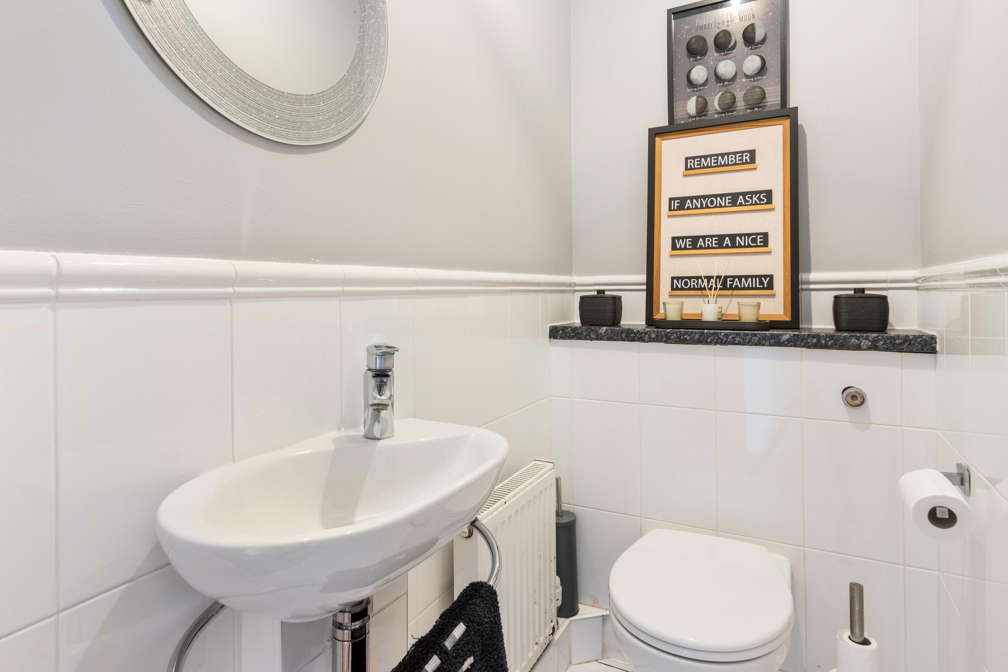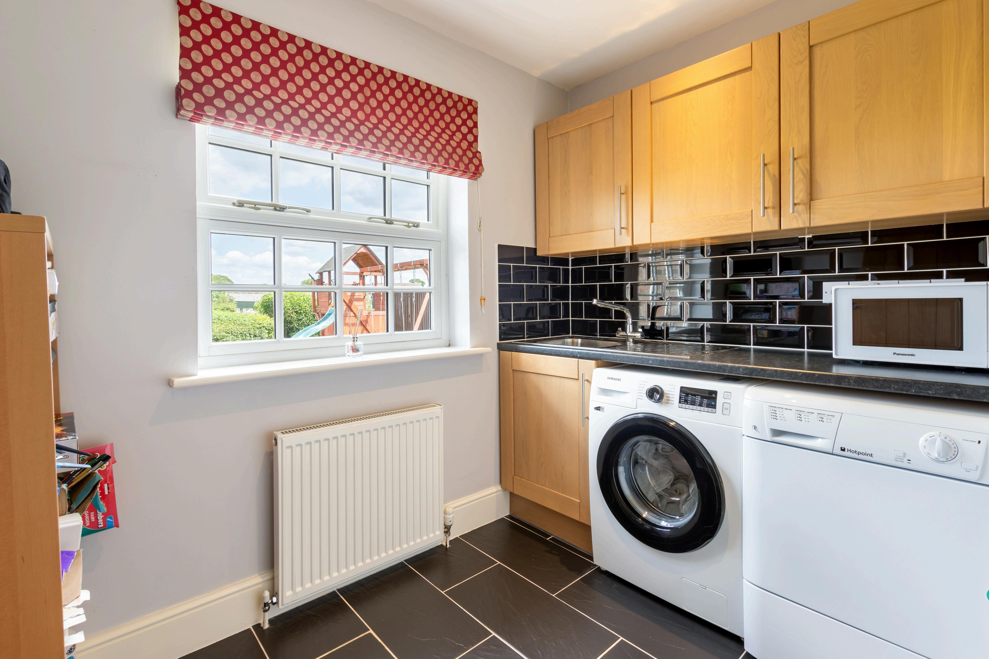 A practical utility room is accessed directly from the entrance hall and provides additional storage, work surfaces, inset sink and appliance space. A useful ground floor WC completes the accommodation on this level.