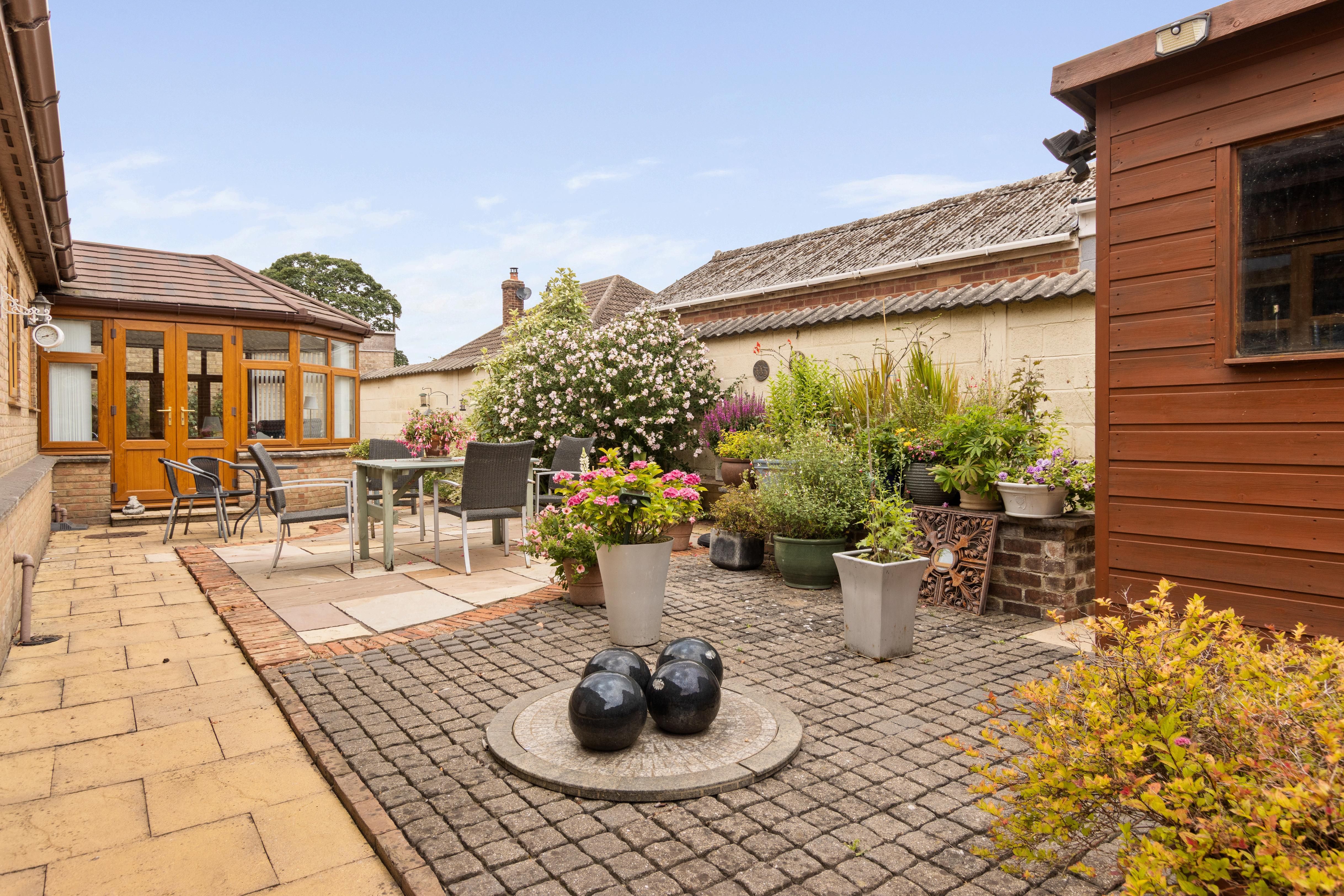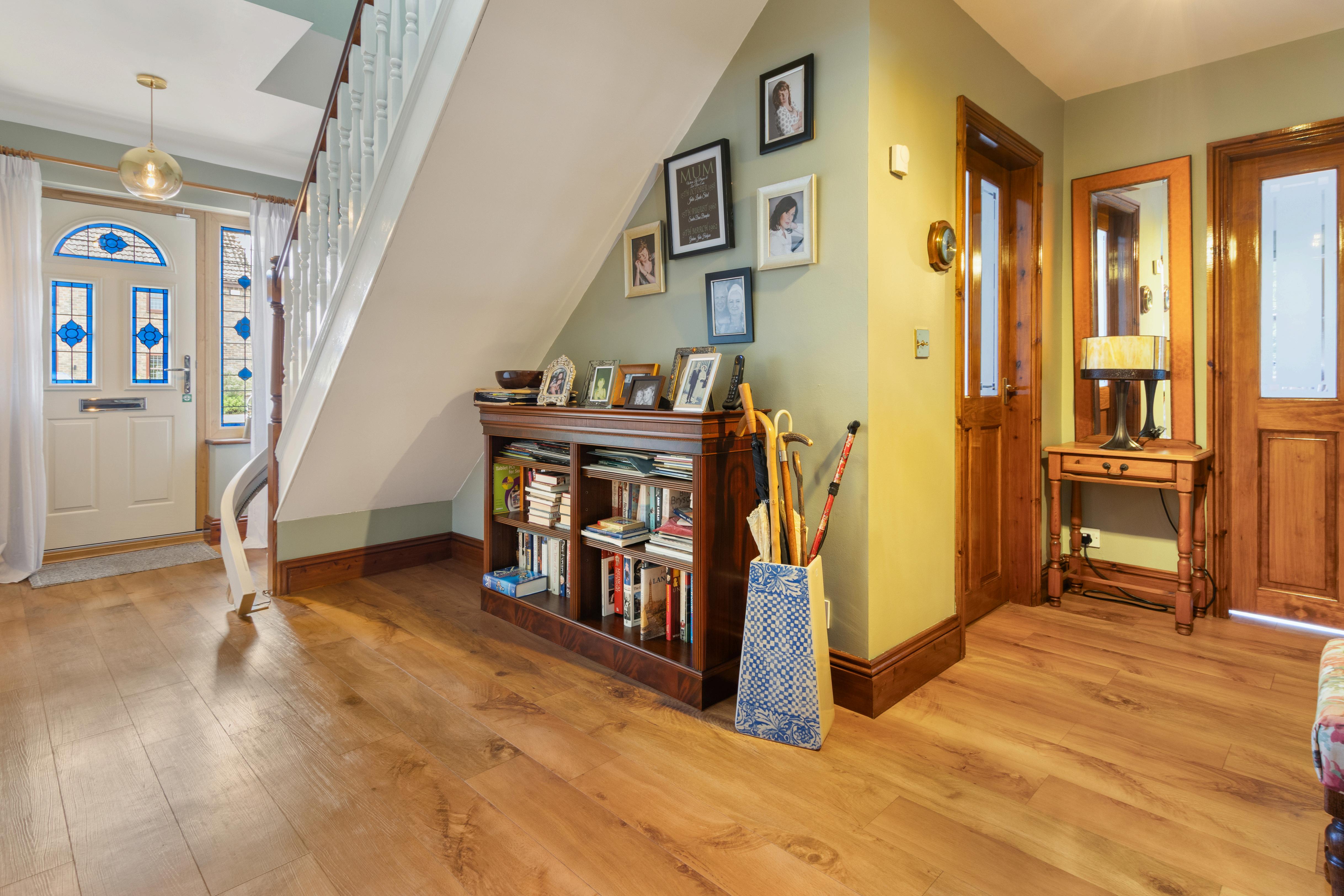 Step outside to find a well-established and private rear garden with paved seating areas and mature borders – perfect for summer entertaining. A side path offers easy access to the block-paved driveway at the front, which provides ample off-street parking and leads to the integral garage. The front garden is attractively planted with shrubs and trees, giving the home a warm and welcoming kerb appeal.