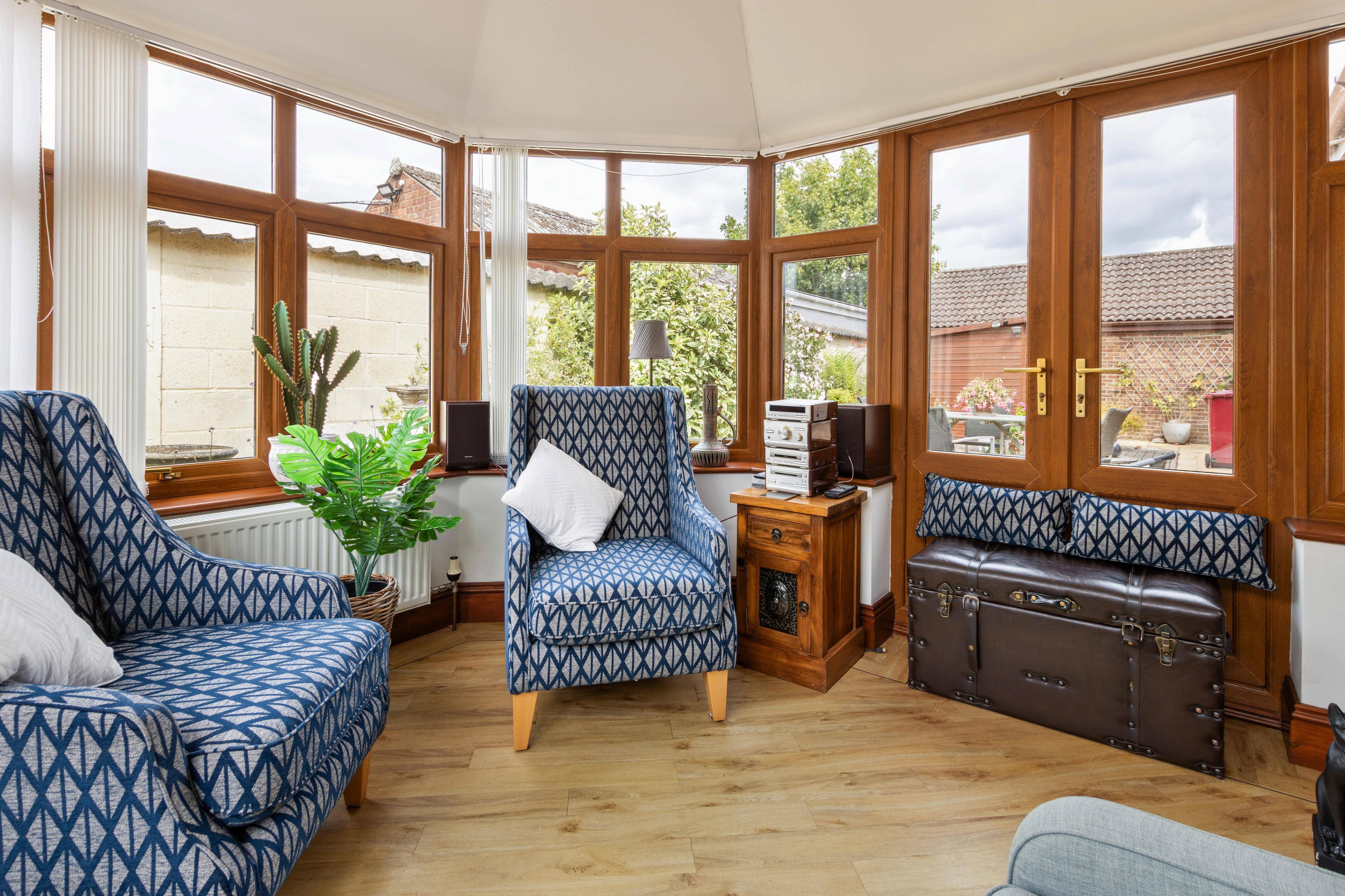 Step inside through a welcoming entrance hallway, complete with warm wood finishes and practical storage. The heart of the home is the spacious kitchen breakfast room, fitted with an extensive range of solid wood units and enjoying dual aspect light. There’s plenty of room for dining and everyday family life, with access to a separate utility room and internal door to the garage. The generous lounge to the front features a bay window, exposed timber beams, and an impressive, exposed brick inglenook-style fireplace, creating a cosy yet characterful space. A formal dining room, currently used as a second reception space but with potential for bedroom four, opens into a bright conservatory overlooking the garden, while a versatile study/snug offers potential use as a third bedroom. Both rooms are well served by the modern ground floor shower room, offering flexibility for guests or multi-generational living.