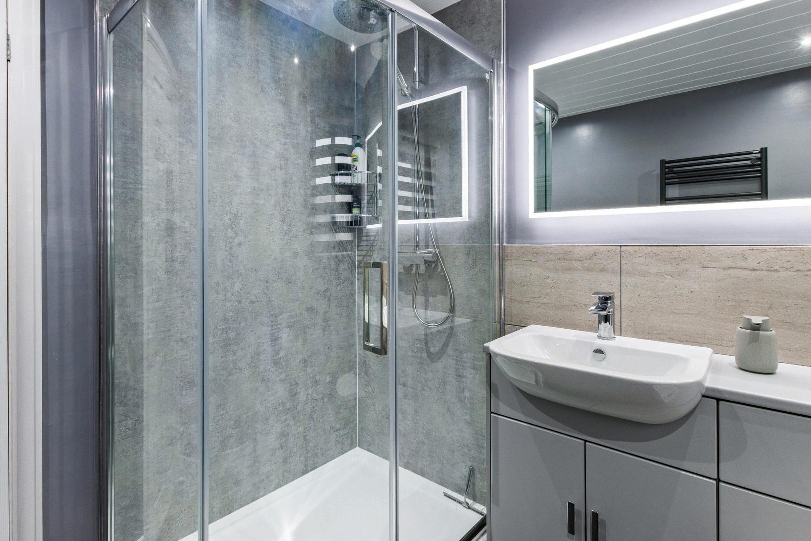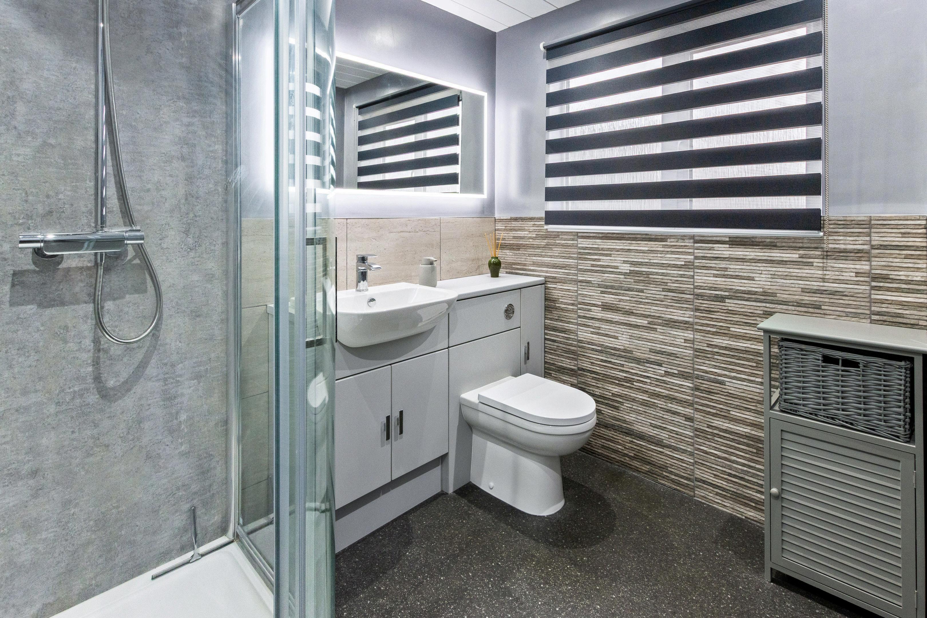 Contemporary kitchen and bathroom finished to a high standard