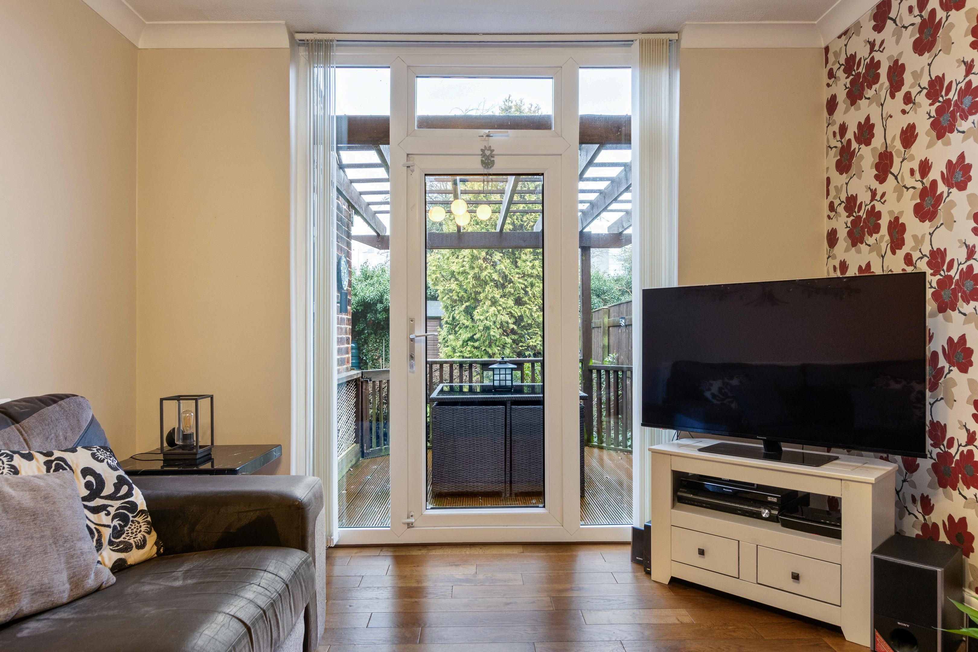 South-facing rear garden with decked seating area