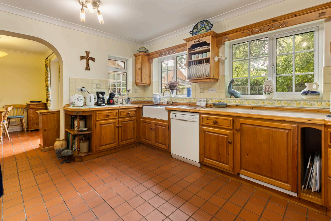 To the first floor, a formal sitting room enjoys dual-aspect windows and a central stone fireplace, creating a welcoming and elevated retreat. Two further double bedrooms and a stylish family bathroom complete the accommodation.