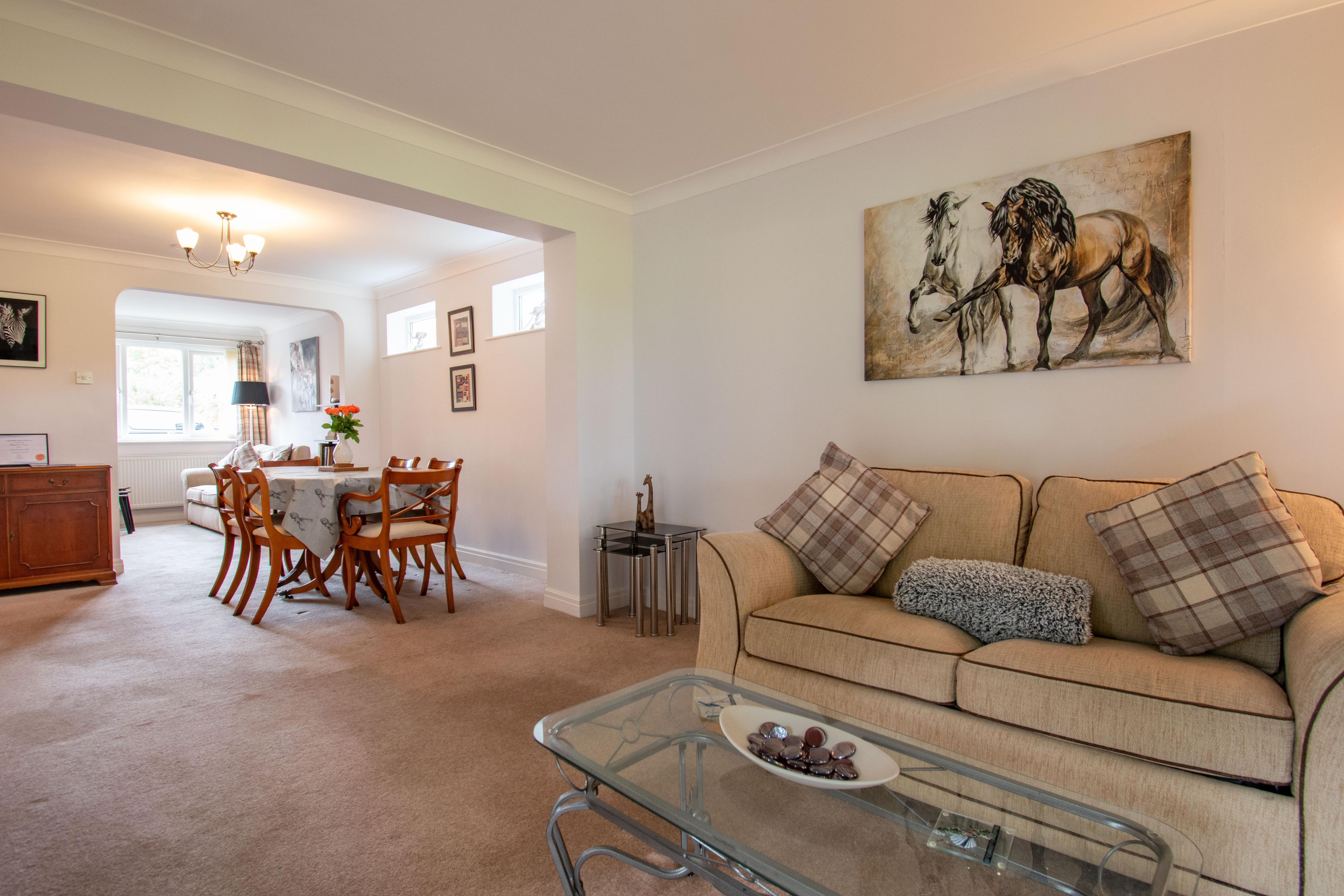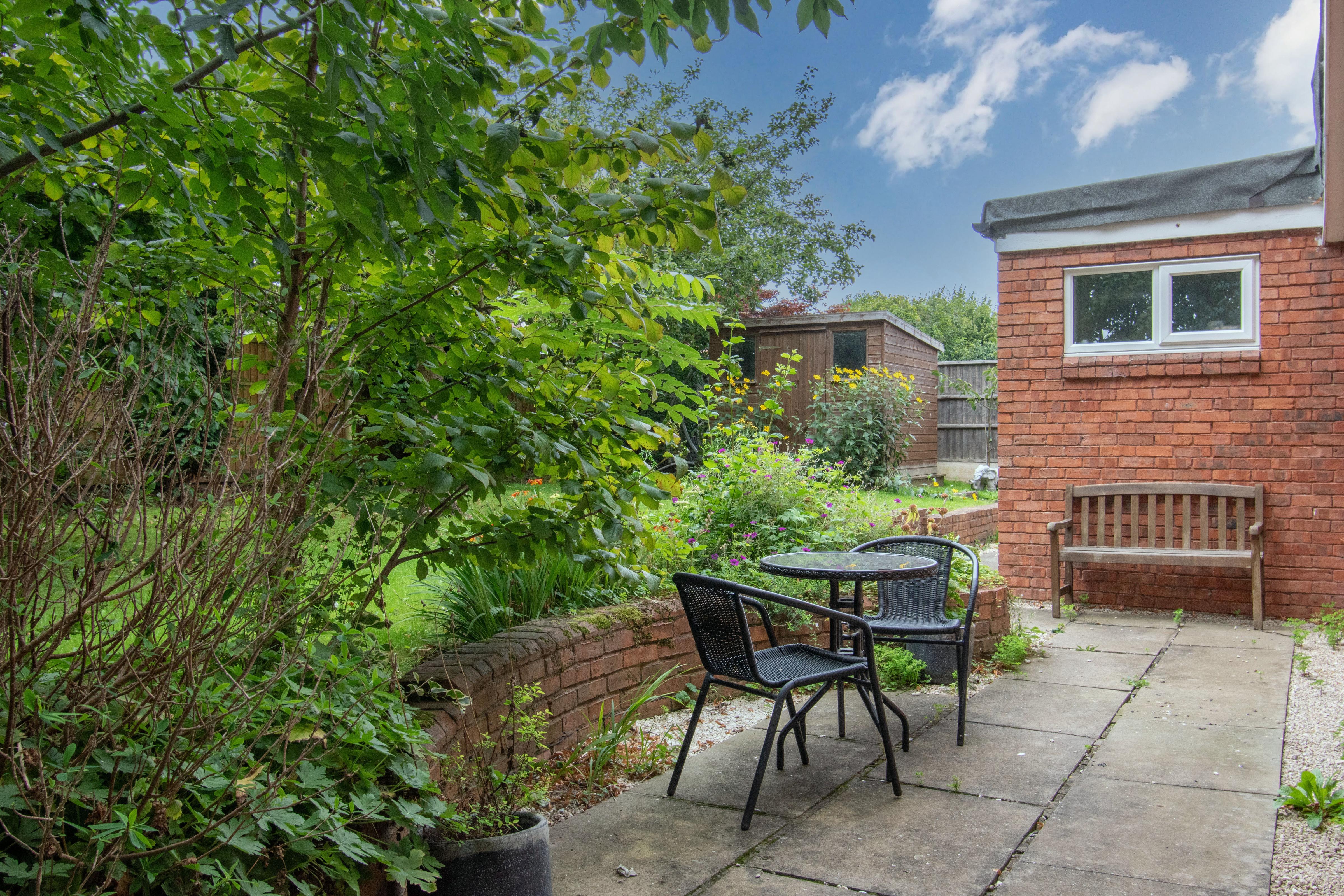 The South and West facing L-shaped rear gardens are adorned with mature shrubs, lush lawn and seasonal floral beds. Multiple outdoor seating and patio areas provide the perfect setting for enjoying the day or evening sun while entertaining guests, or simply unwinding. The front of the property boasts a spacious tarmac driveway, providing ample parking space for multiple vehicles. This welcoming entryway is surrounded by lawn and charming shrub borders. The driveway leads to a double detached garage, offering not only secure parking but also additional storage space for your convenience.