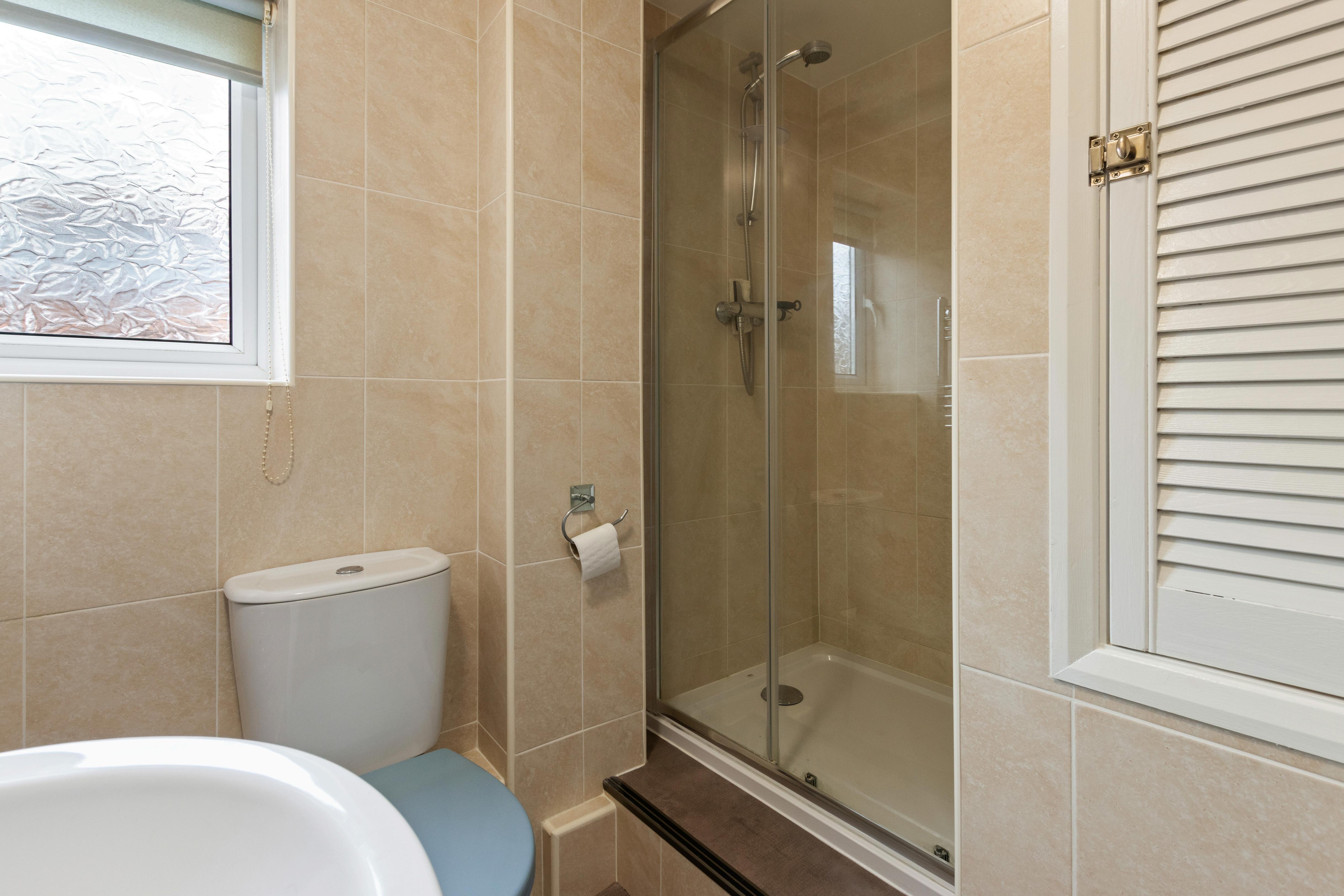 Completing the internal accommodation is a modern shower room, fully tiled for easy maintenance and featuring a glazed shower enclosure, wash hand basin, and WC. The light colour palette and frosted window add to the bright and airy feel.