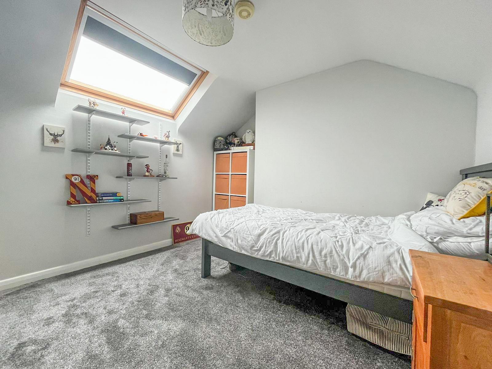 To the first floor are two further spacious double bedrooms with Velux windows that provides a bright and airy feel to each room. The master bedroom boasts a contemporary styled ensuite shower room and the first floor also obtains the added benefit of substantial eaves storage space.