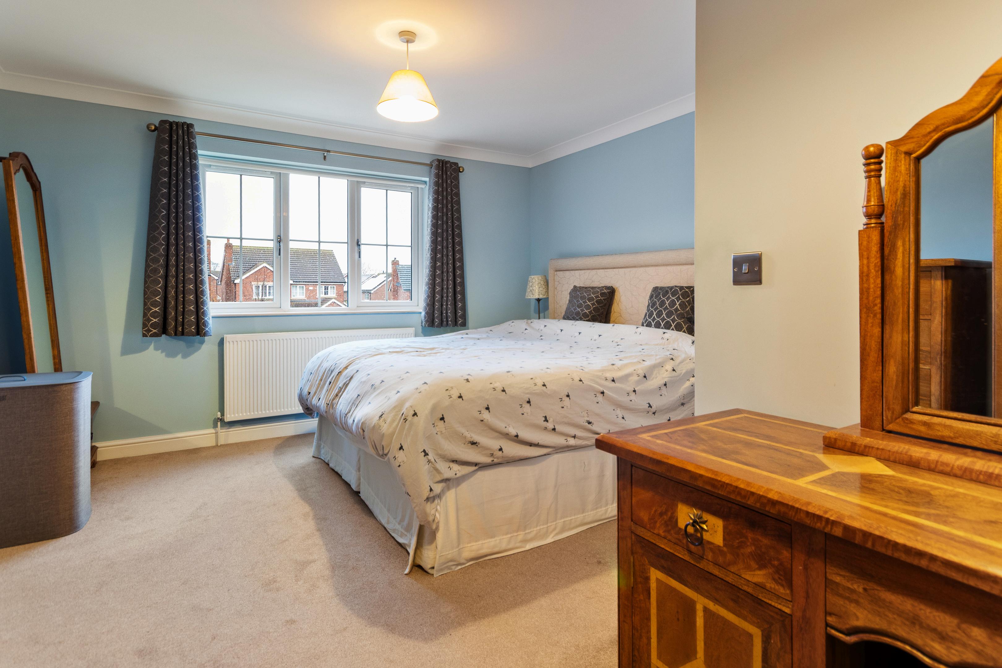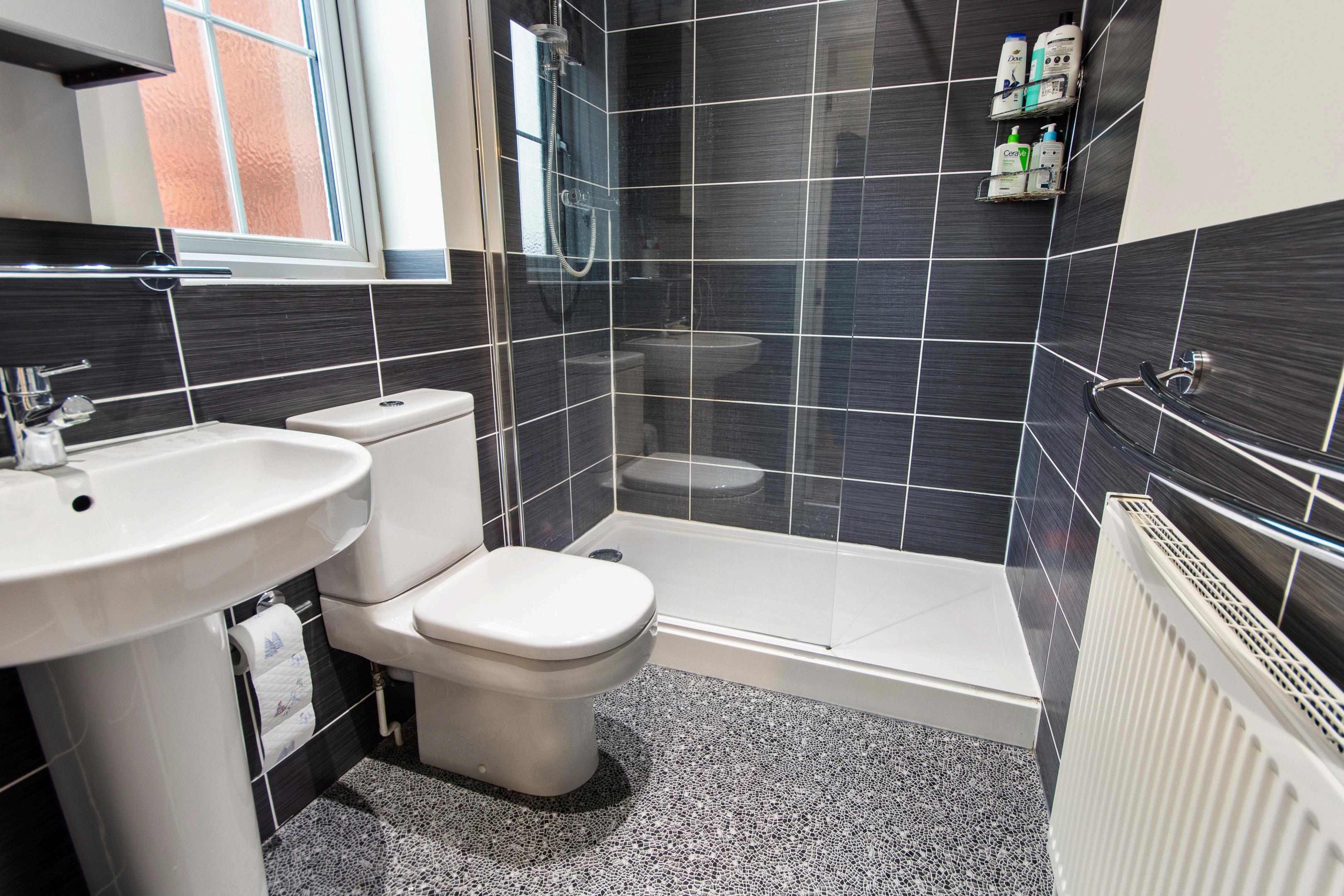 Upstairs, the layout continues to impress with four genuine bedrooms. The principal bedroom is a strong double with its own en-suite shower room finished with modern tiling and a contemporary suite. Bedrooms two and four are both excellent doubles, while bedroom three is a comfortable and ideal nursery/home office. Completing the first floor is the family bathroom, fitted with a modern white suite and a bath with tiled surround.
