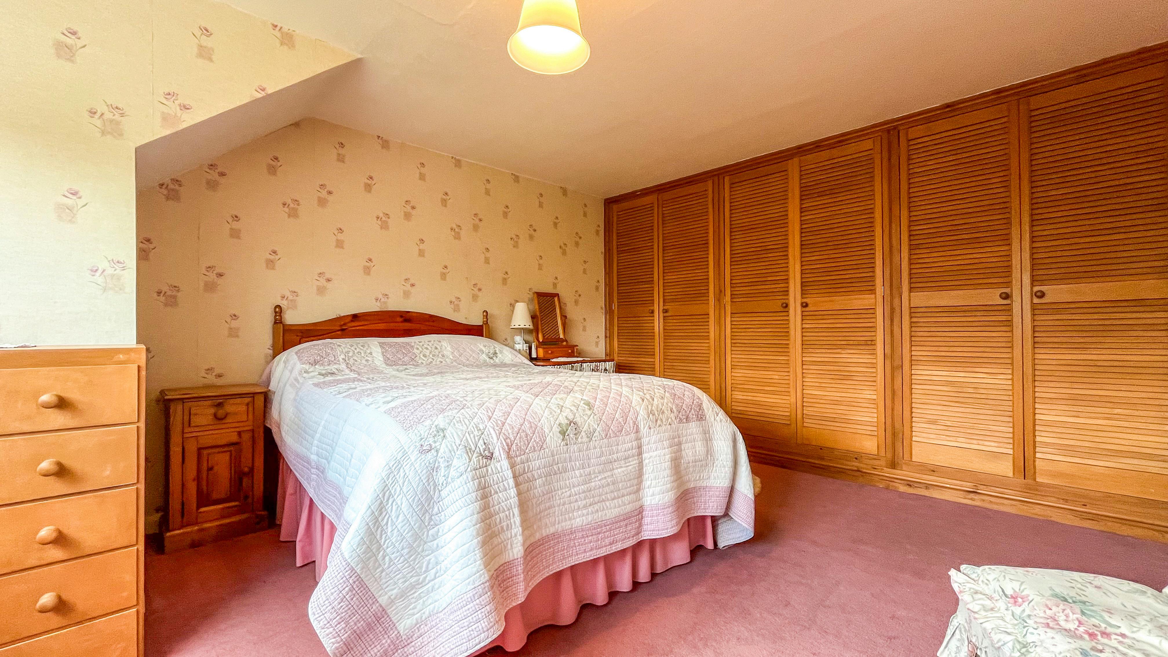 Ascending to the first floor, you'll discover a generously sized bedroom complete with fitted wardrobes, a three-piece family bathroom, and ample eaves storage.