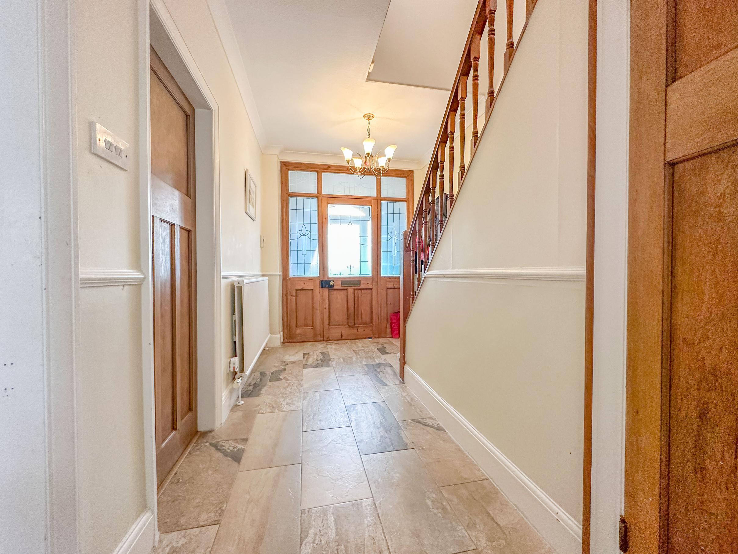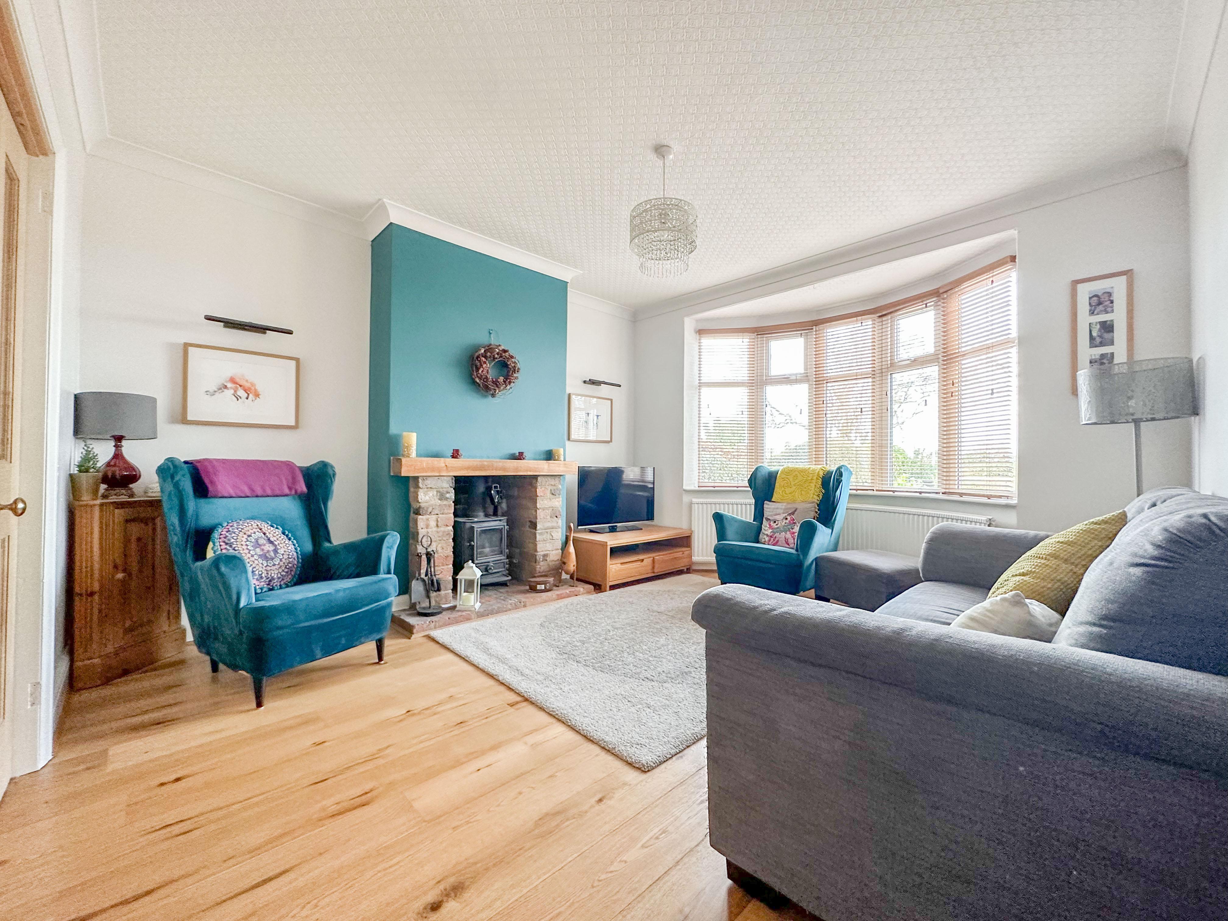 A warm and welcoming hallway greets you into this fabulous home with stairs leading to the first floor and leads into the modern fitted kitchen with built in appliances, a handy cloakroom with a hand wash basin and toilet, a front aspect lounge that benefits from a walk-in bay window, a feature fireplace with a log burning stove and folding double doors that lead to the adjoining dining room with a fireplace and French doors to the conservatory