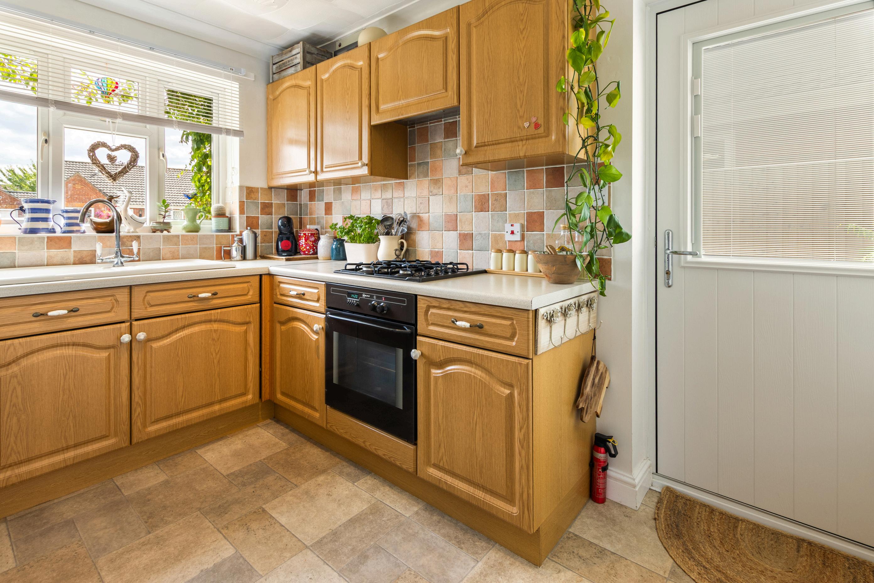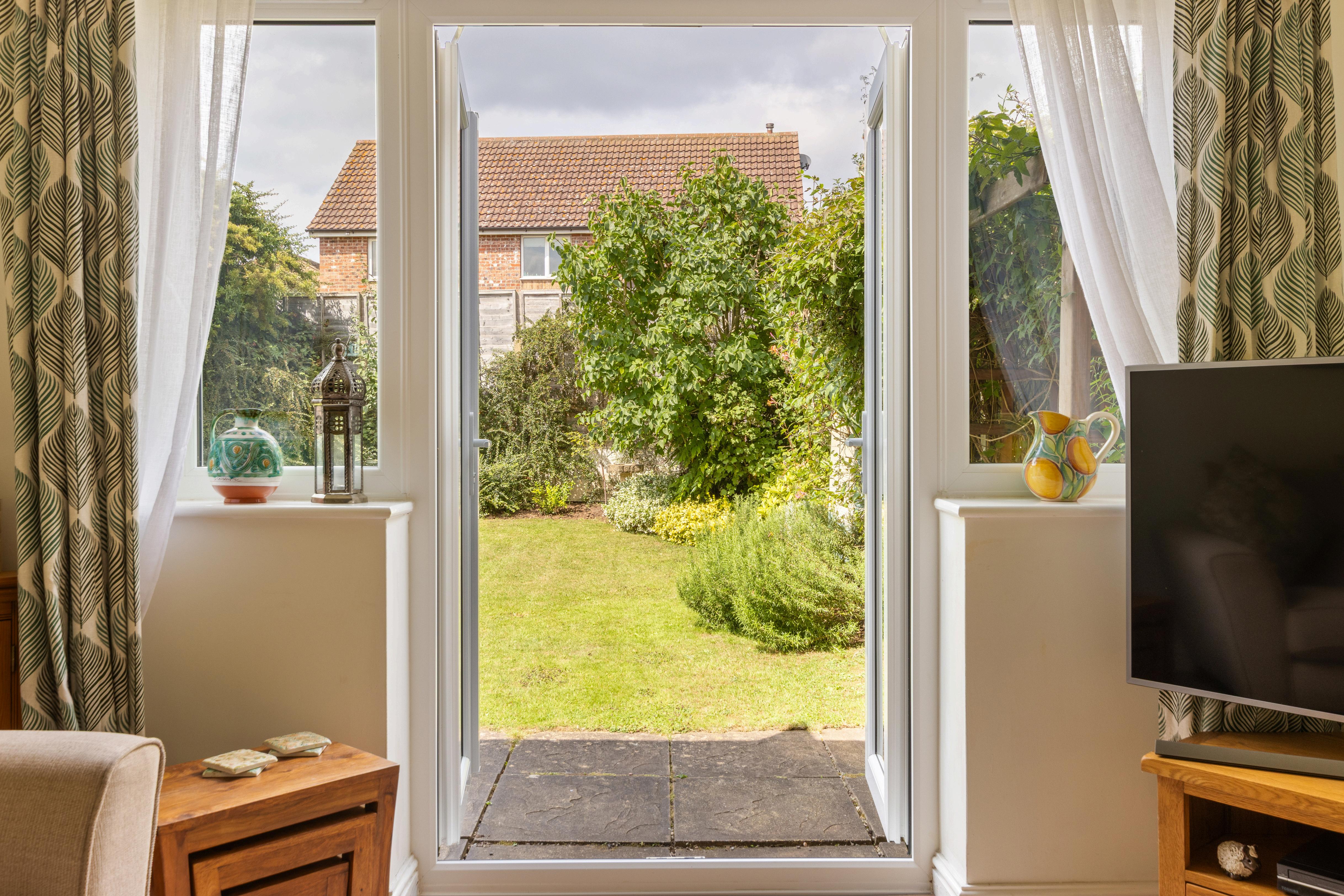 Step inside to the welcoming entrance hallway, where you will find easy access to all the main rooms. The bright rear-facing lounge enjoys French doors opening onto the garden, a charming feature fireplace, and ample space for a dining table. The traditional fitted kitchen is equipped with an integrated oven and hob, with plenty of space for additional appliances, making it both practical and homely.